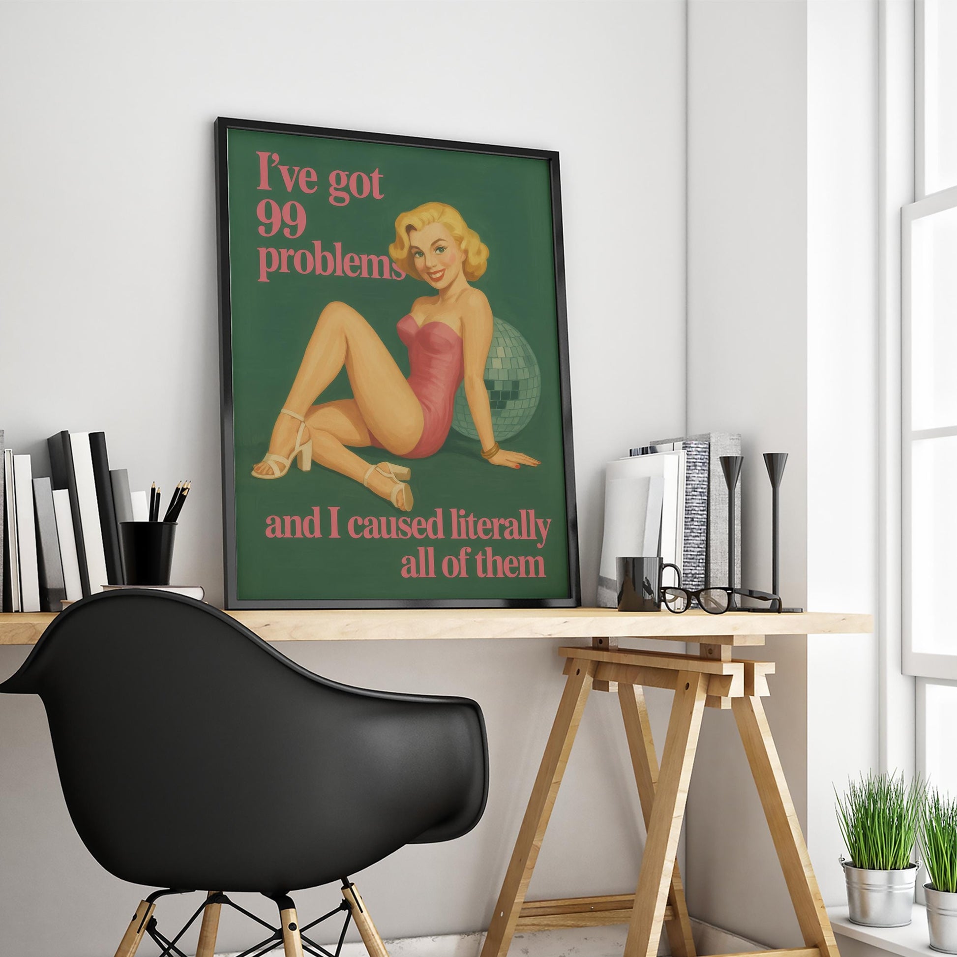 99 Problems Poster – Funny Pinup Print With Blonde Bombshell Art & Retro Style