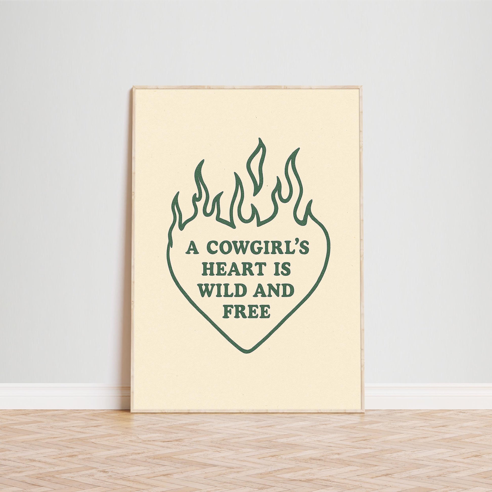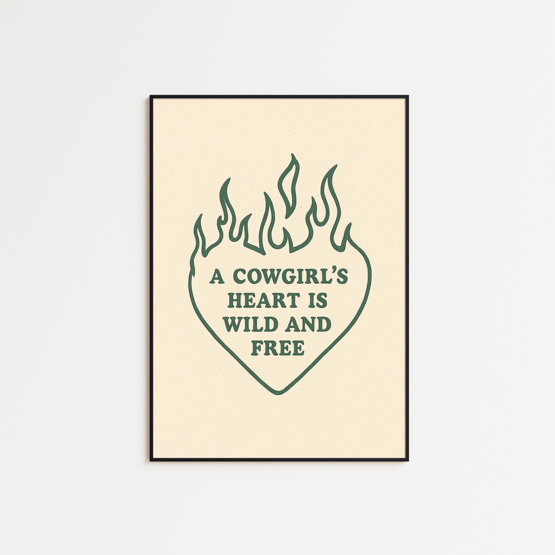 A Cowgirl’s Heart Is Wild and Free Poster – Western Quote Print, Minimal Country Wall Art