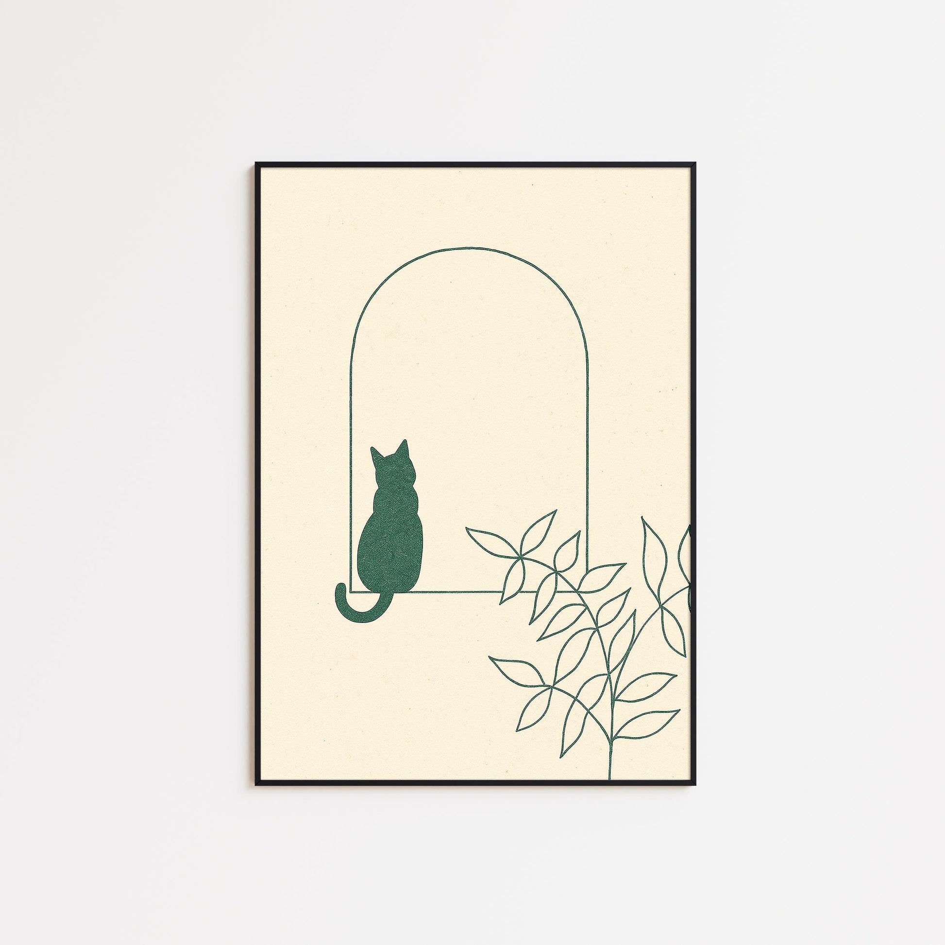 Arch Window Cat – Minimal Line Art Poster, Calm Scandinavian Wall Print