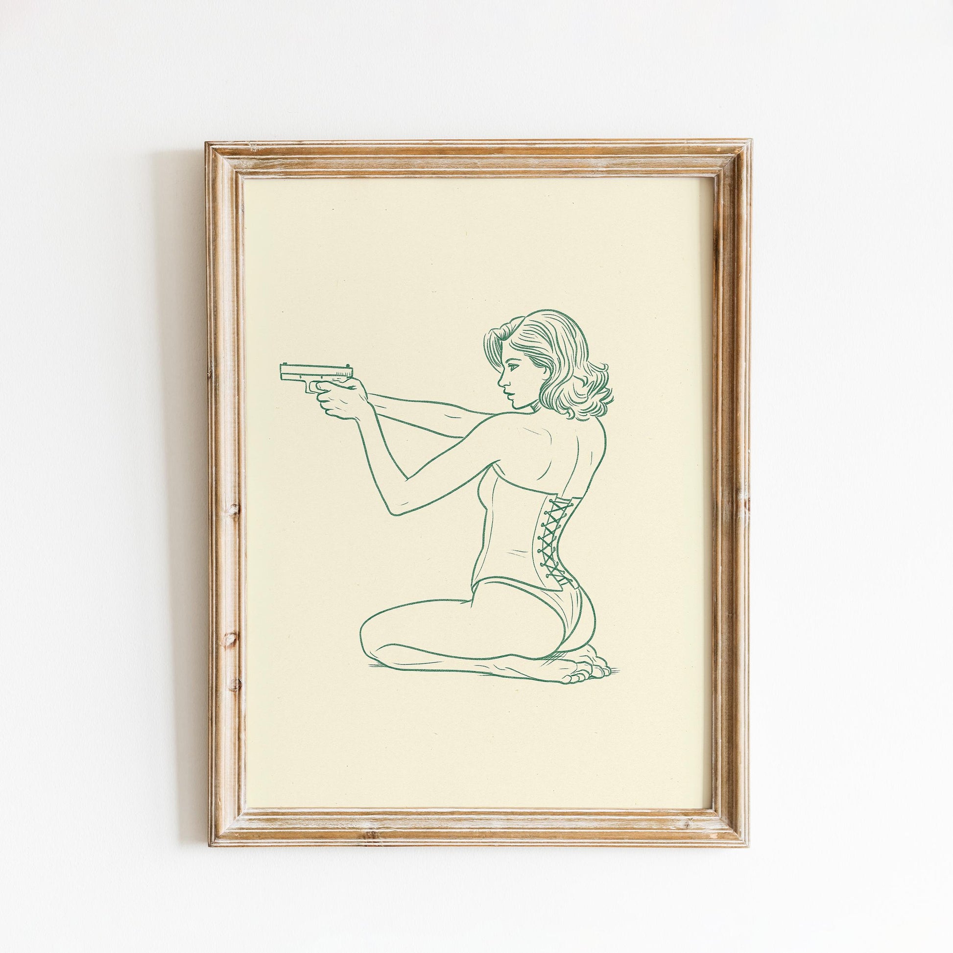 Armed Muse Poster – Minimal Line Art Woman Print, Femmaura Bold Series
