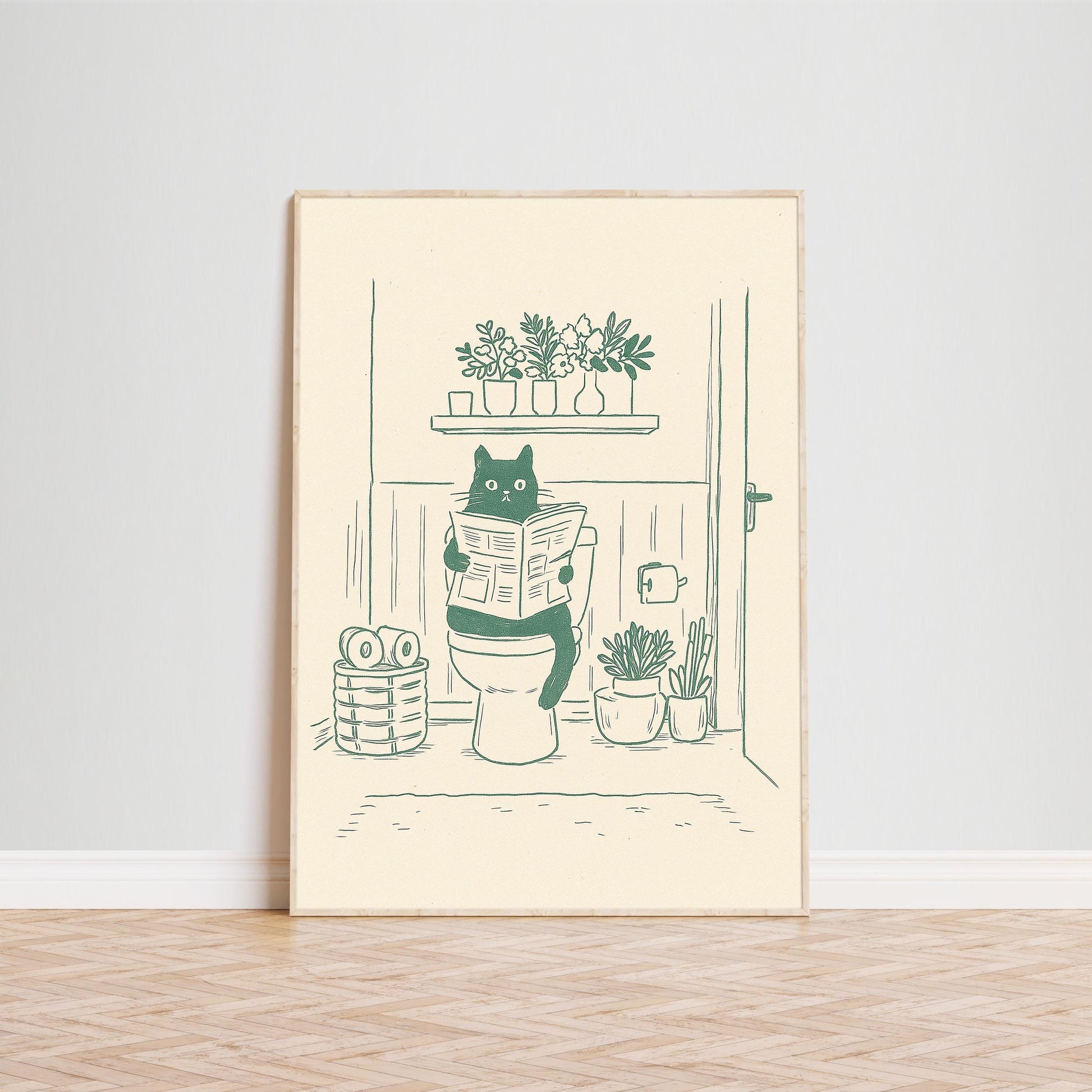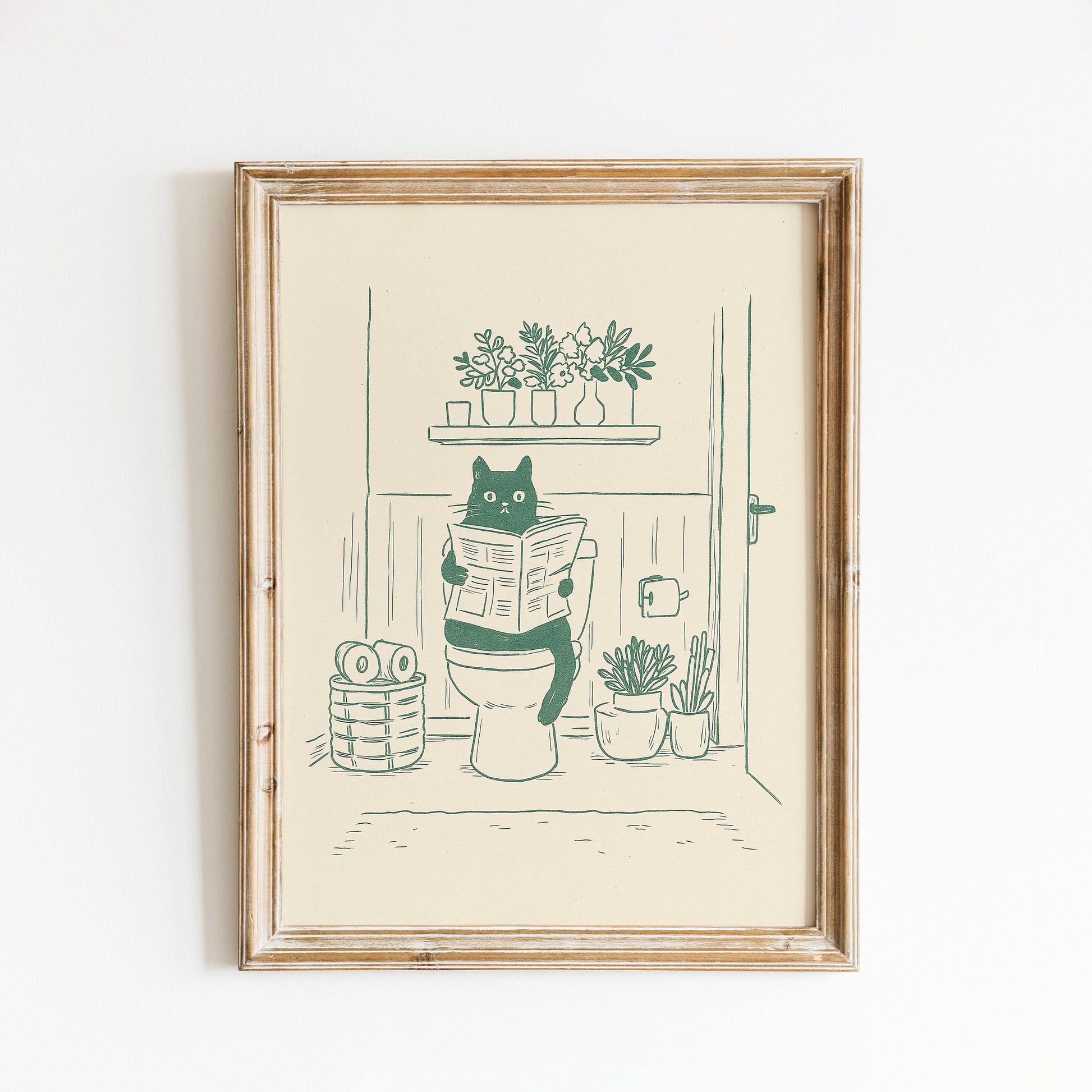Bathroom Cat Poster – Funny Minimal Line Art Wall Decor