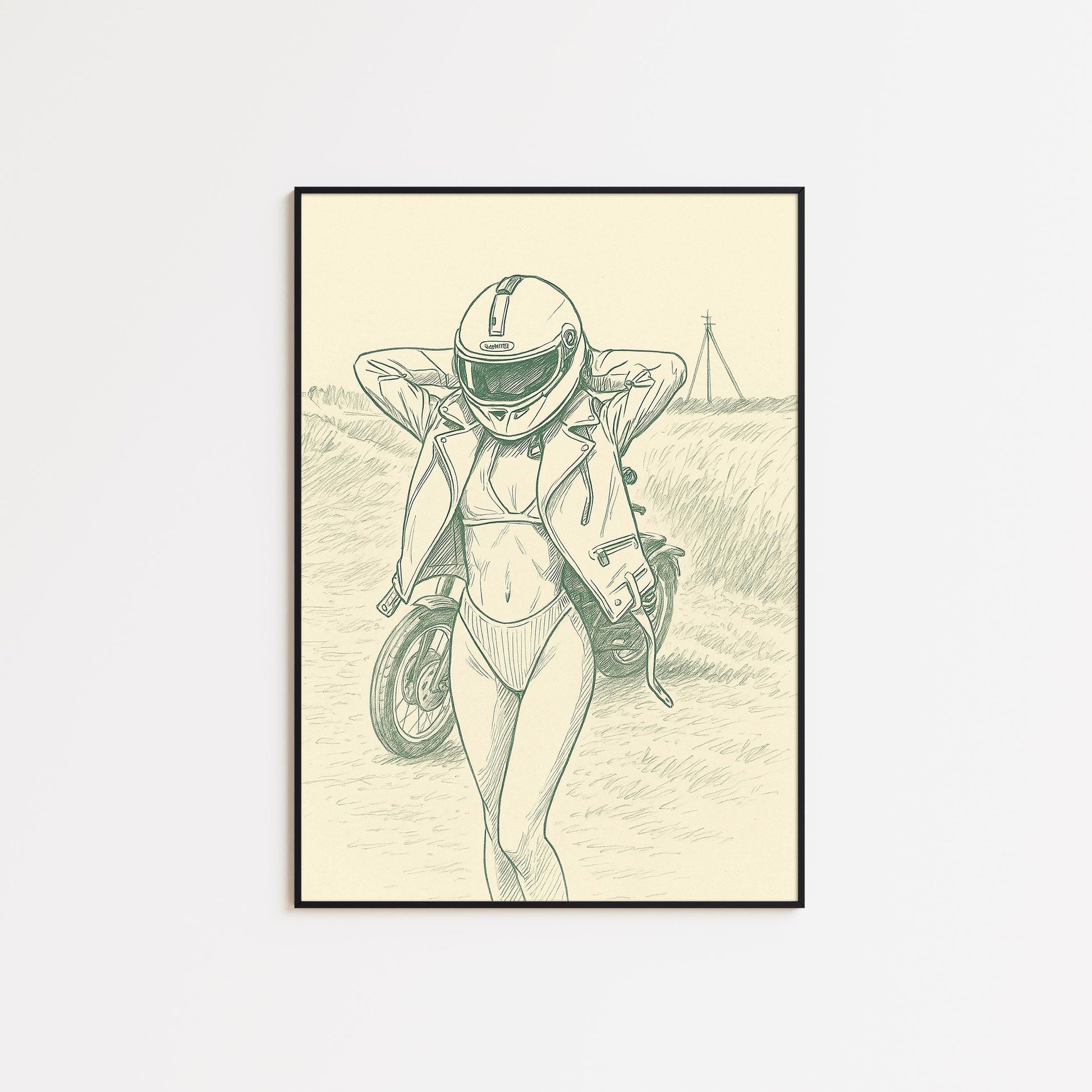Biker Girl Line Art Poster – Feminine Strength Wall Art, Vintage Motorcycle Illustration