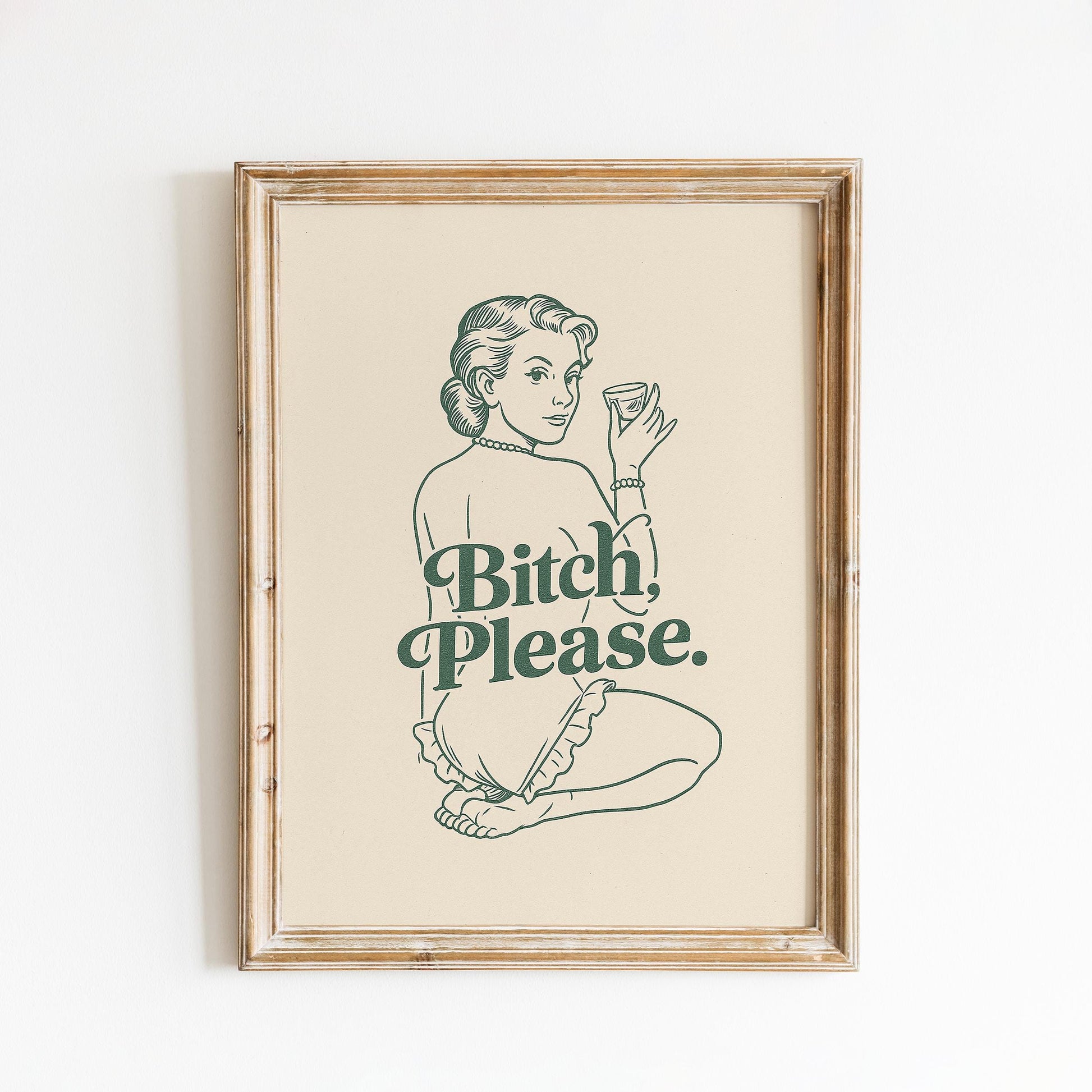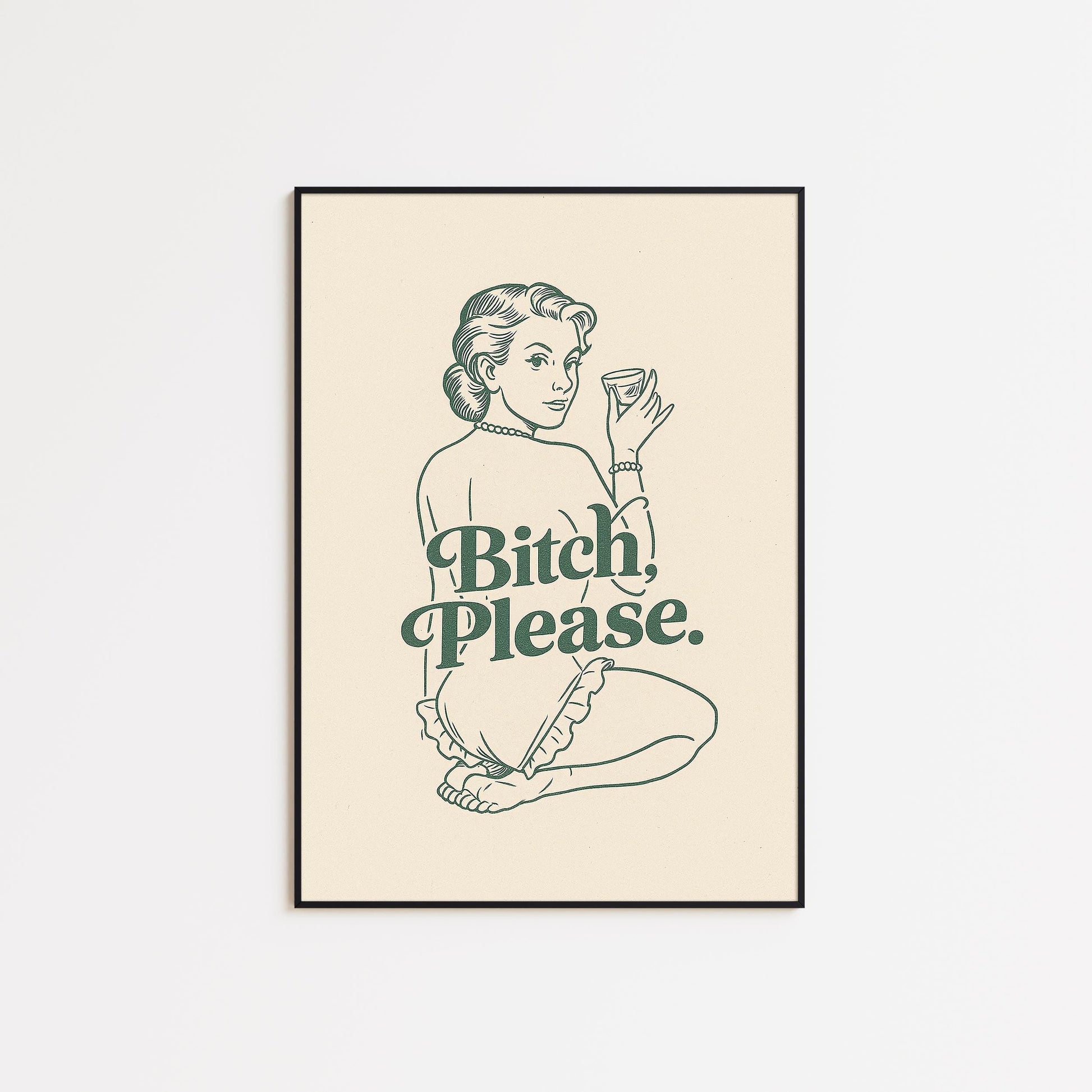 Bitch Please Poster – Vintage Green Line Art Print with Attitude