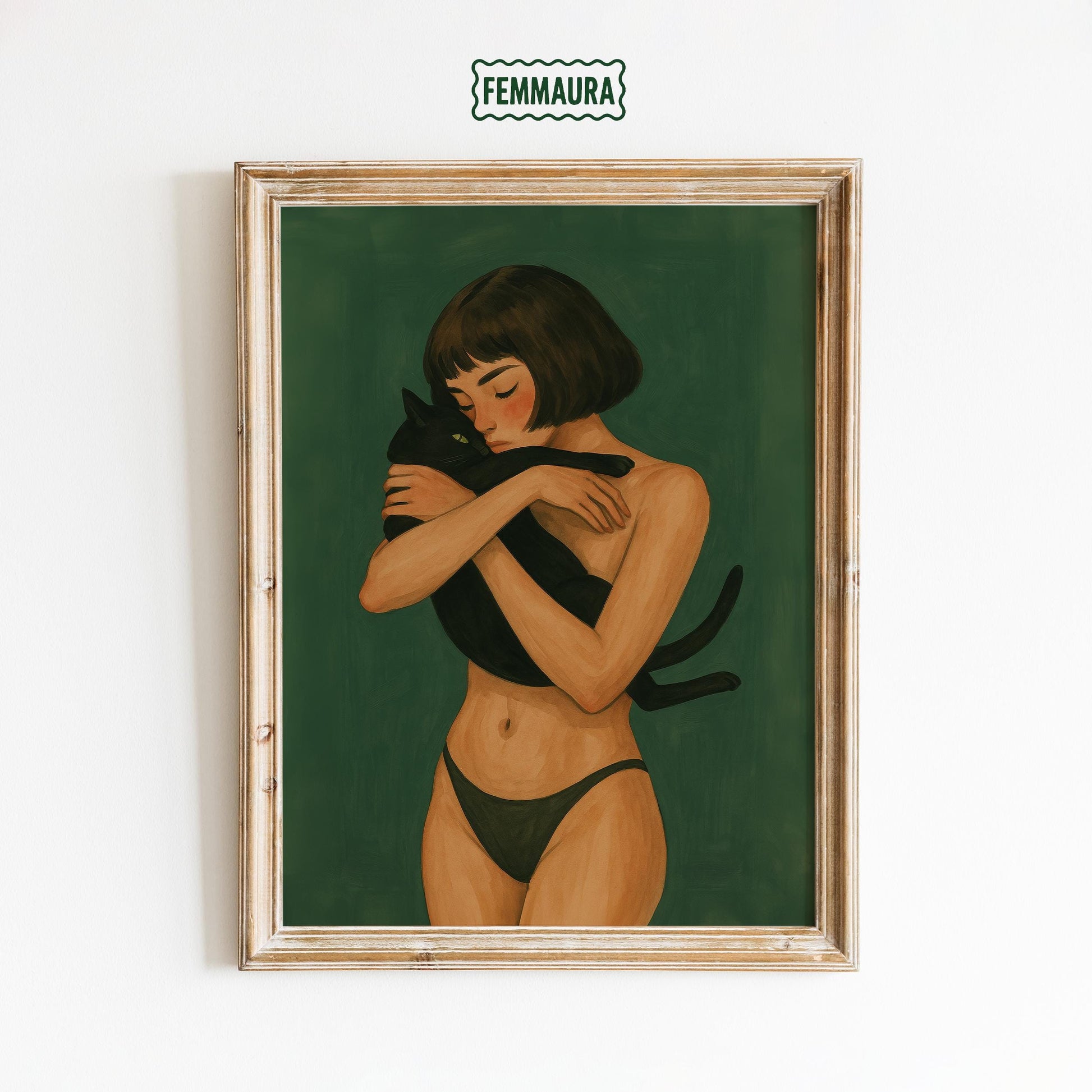 Black Cat Art Print – Minimalist Gouache Digital Cat Illustration for Cozy Bedroom Wall Art