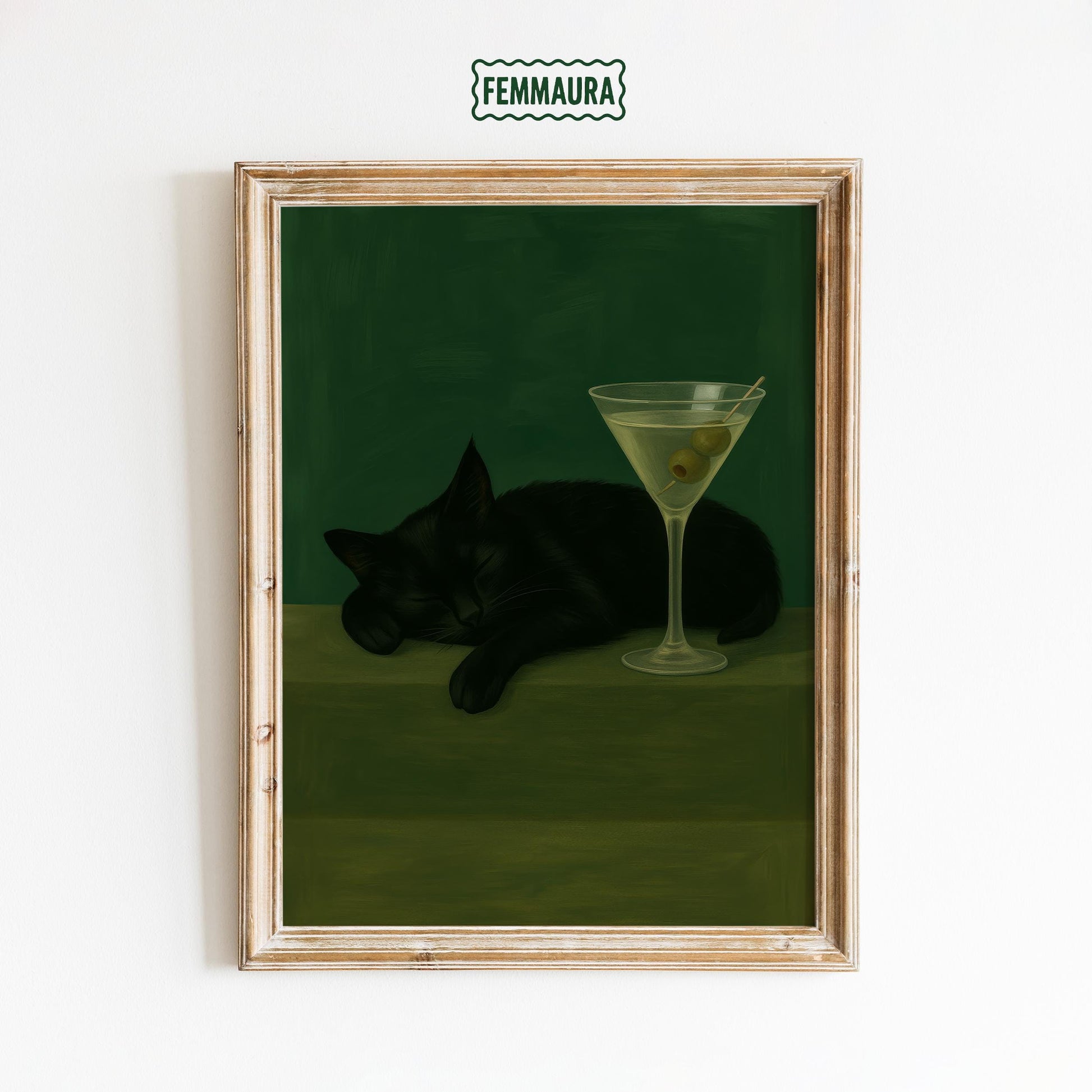 Black Cat Martini Poster – Retro Bar Wall Art With Playful Elegance Print
