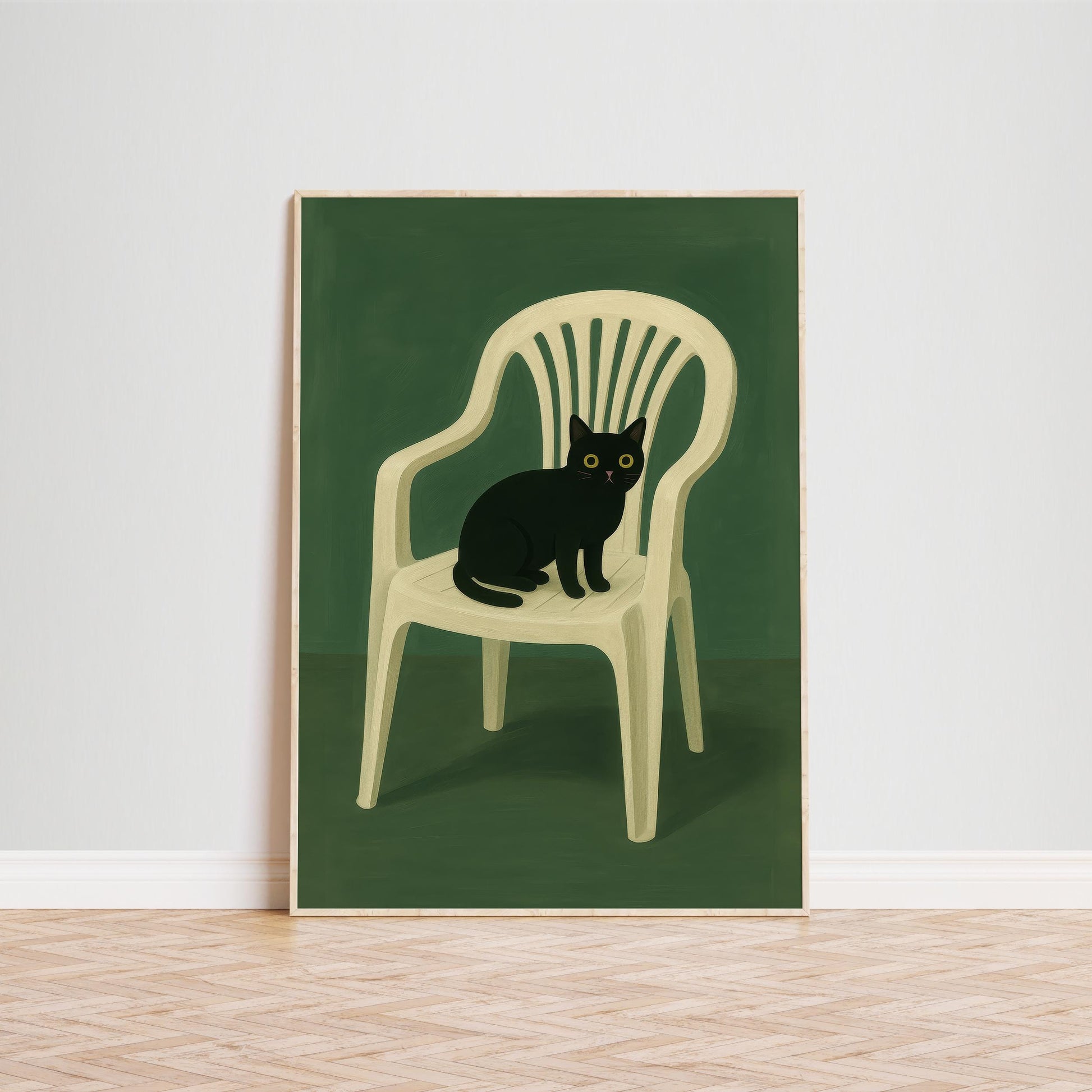 Black Cat Wall Art – Minimalist Animal Poster Print on Plastic Chair