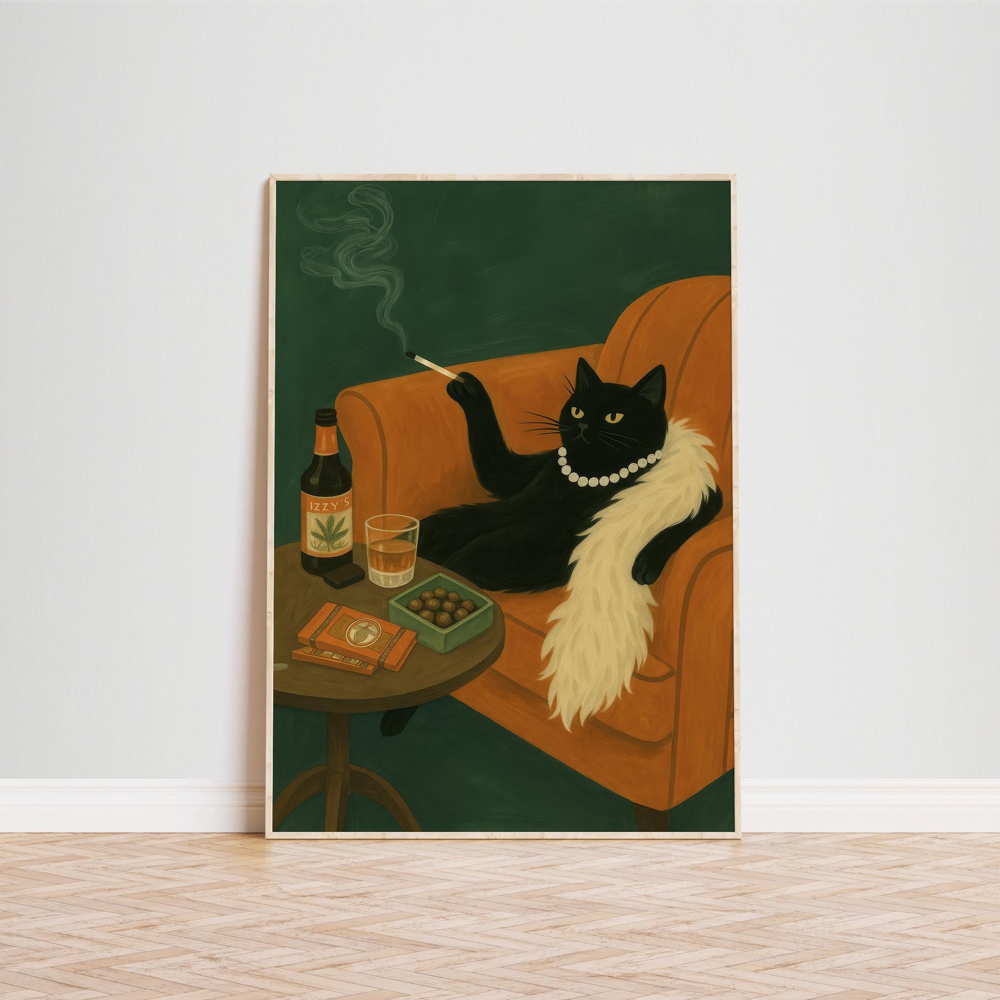 Black Cat Wall Art – Retro Glam Decor with Elegant, Moody Feline Print