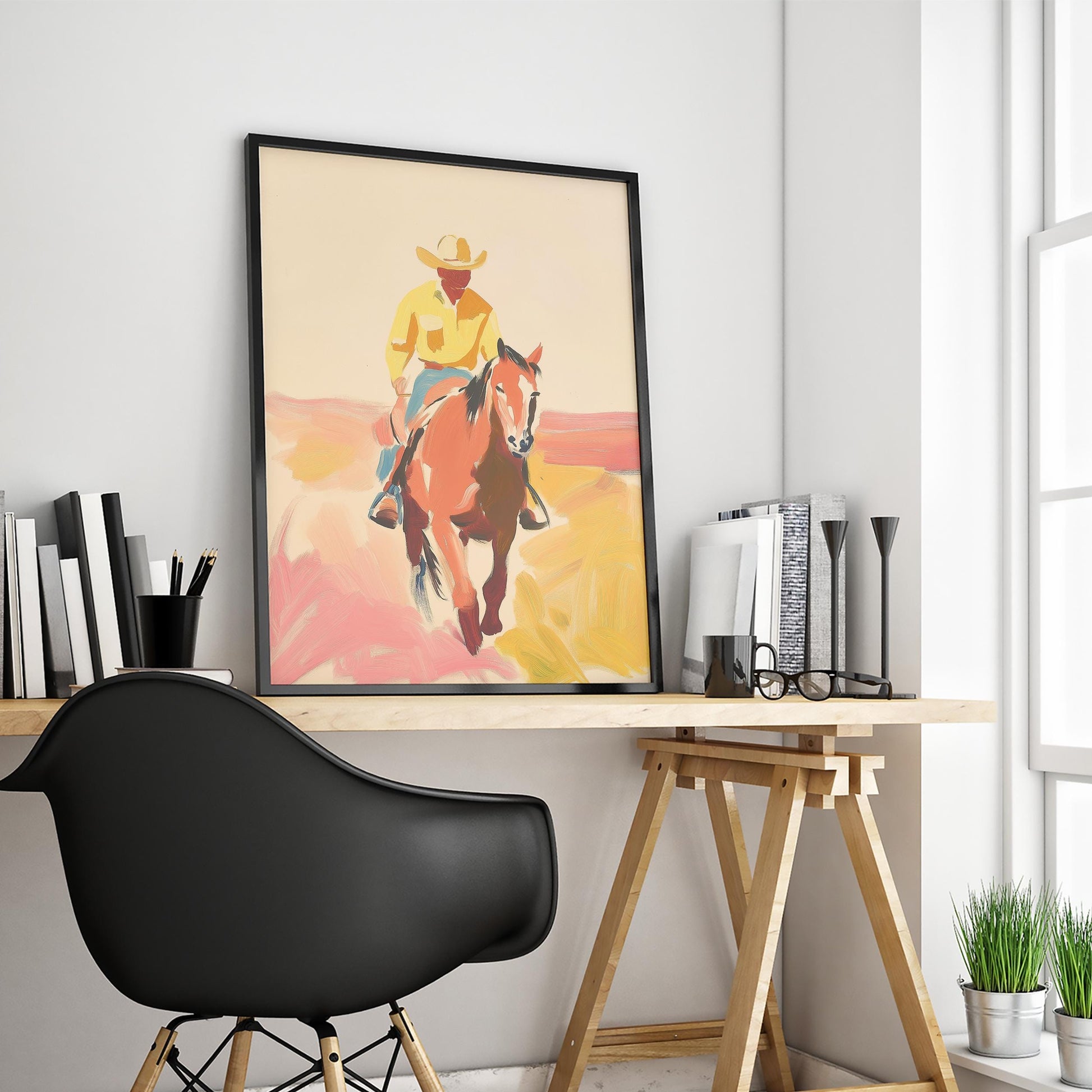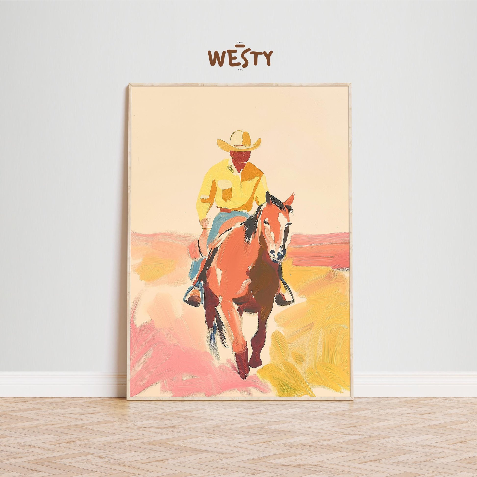 Bold Cowboy Riding Print – Colorful Western Wall Art