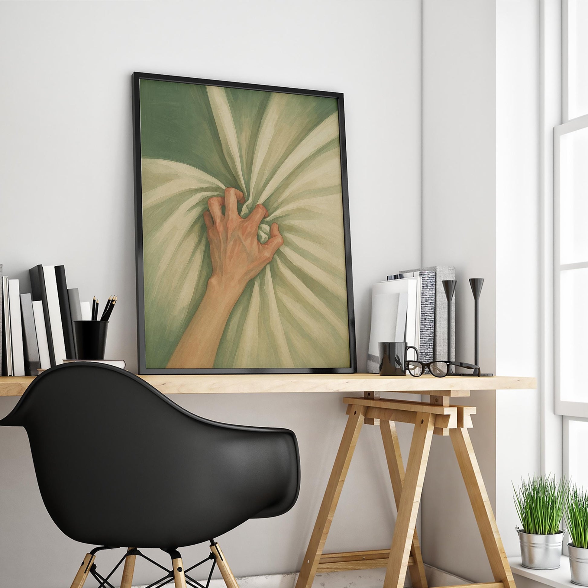 Bold Minimalist Wall Art – Striking Hand Gesture Poster with Moody Green Tones