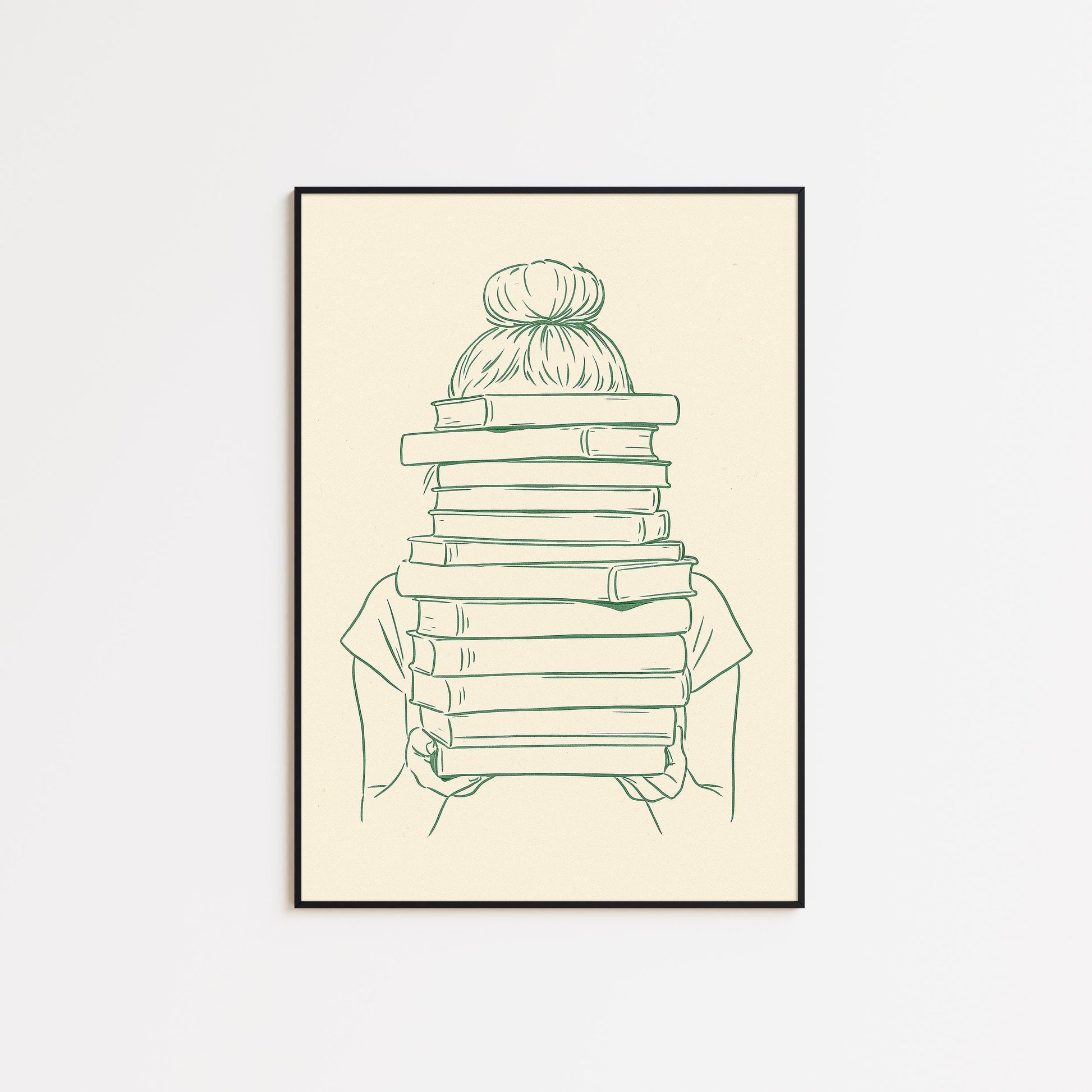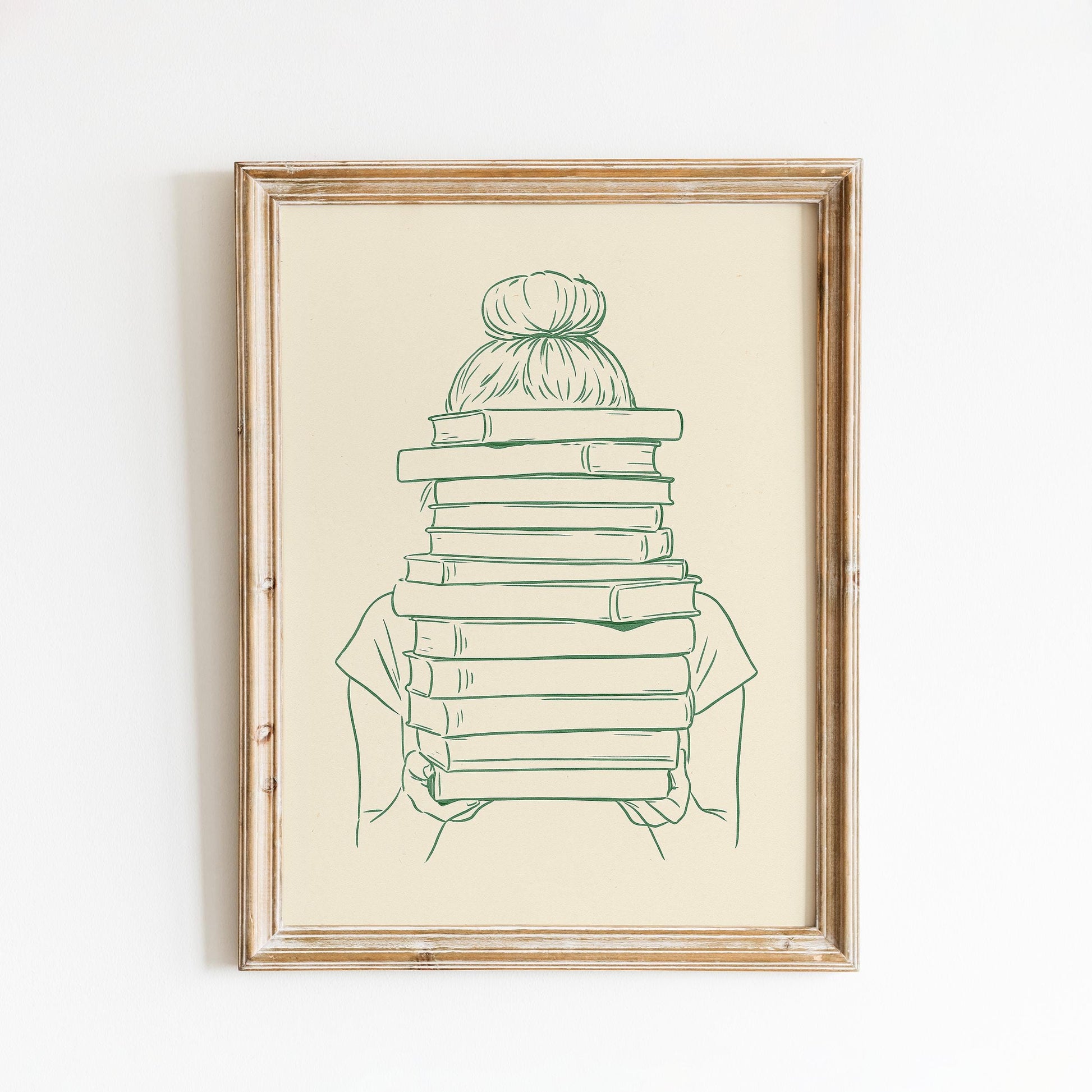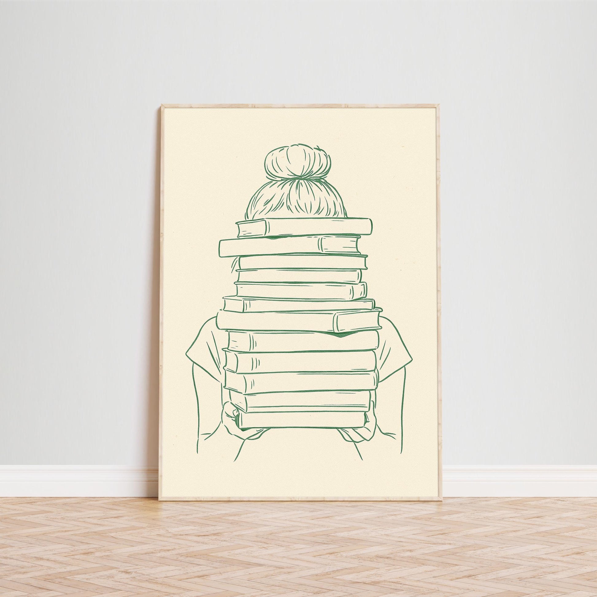 Book Lover Poster – Minimal Reading Girl Line Art Print