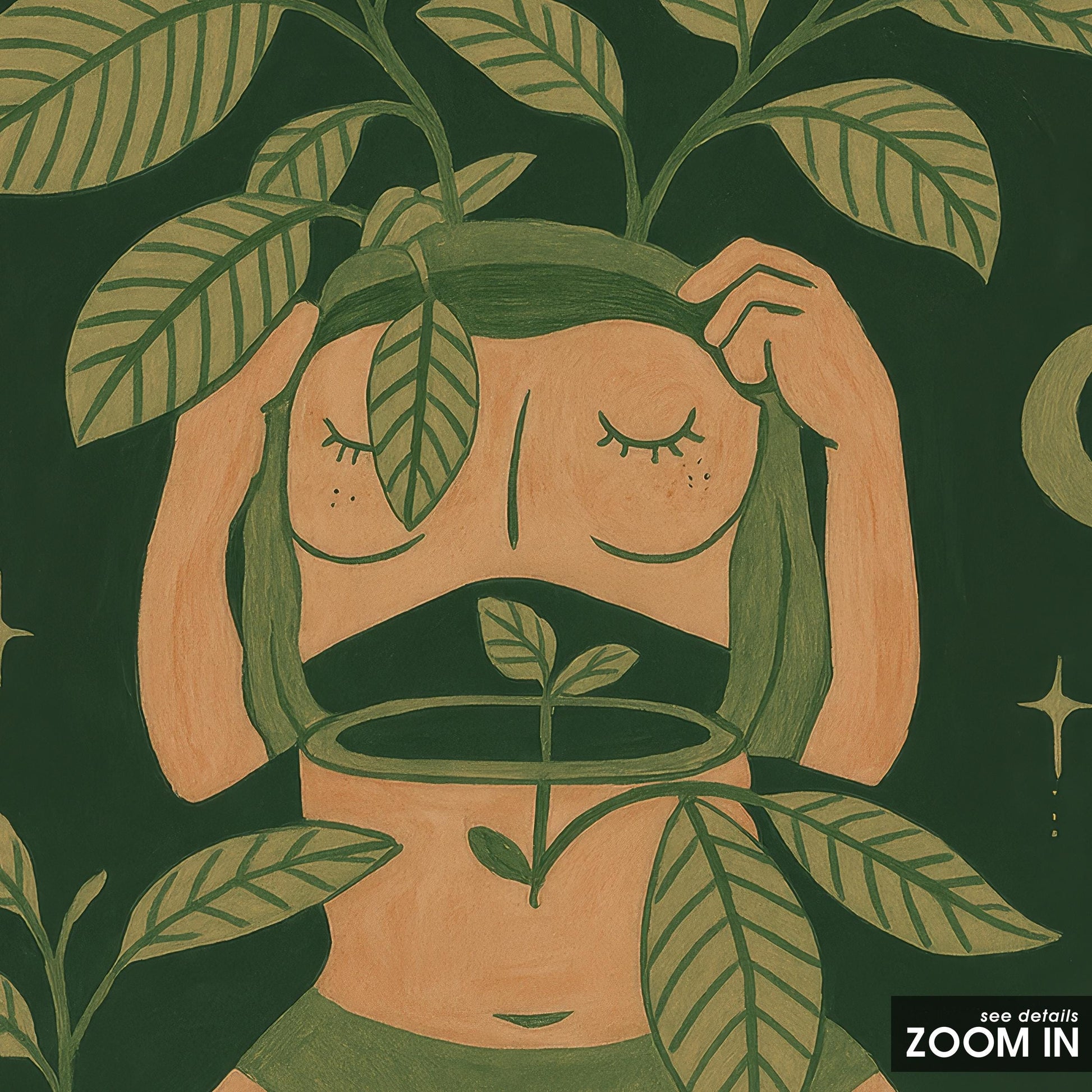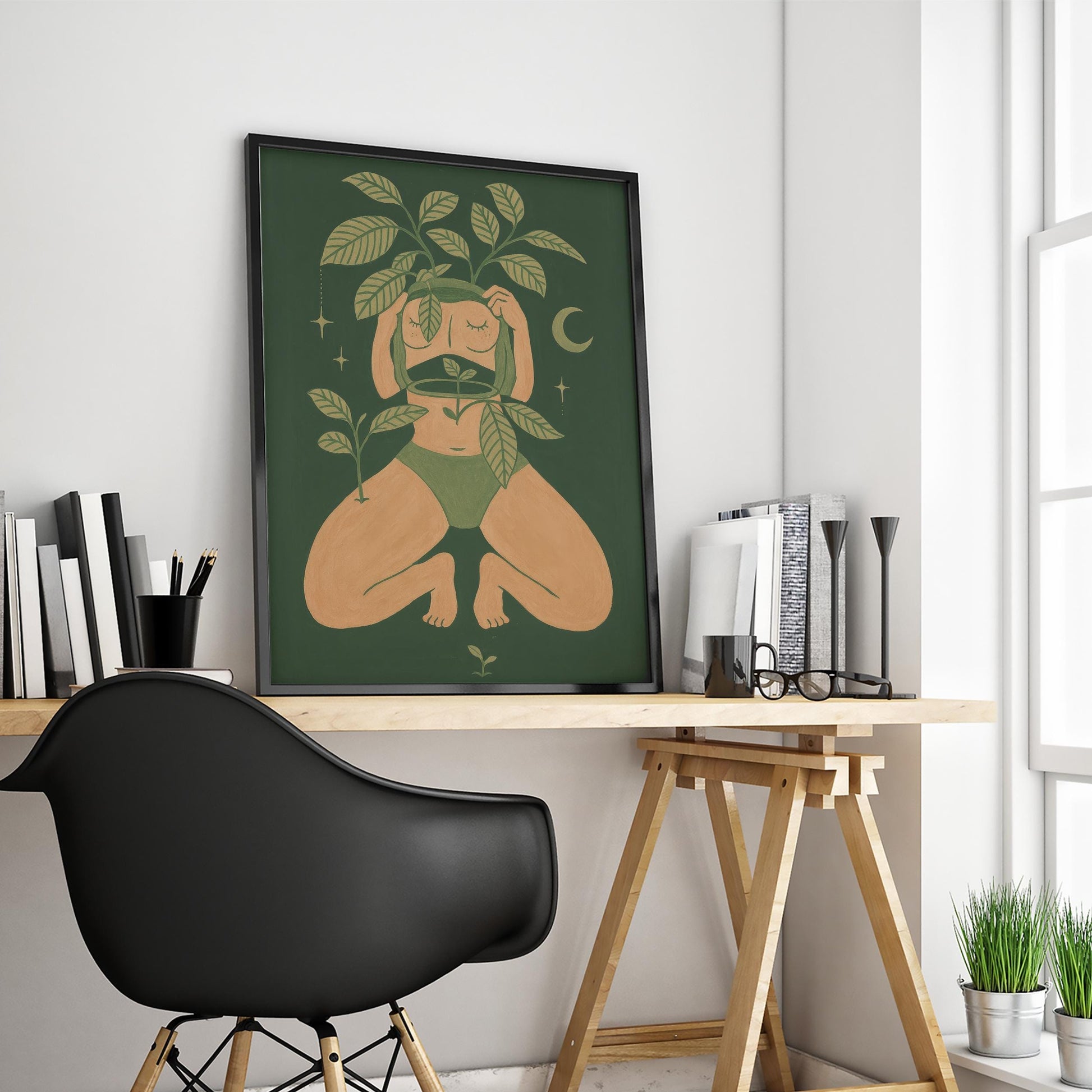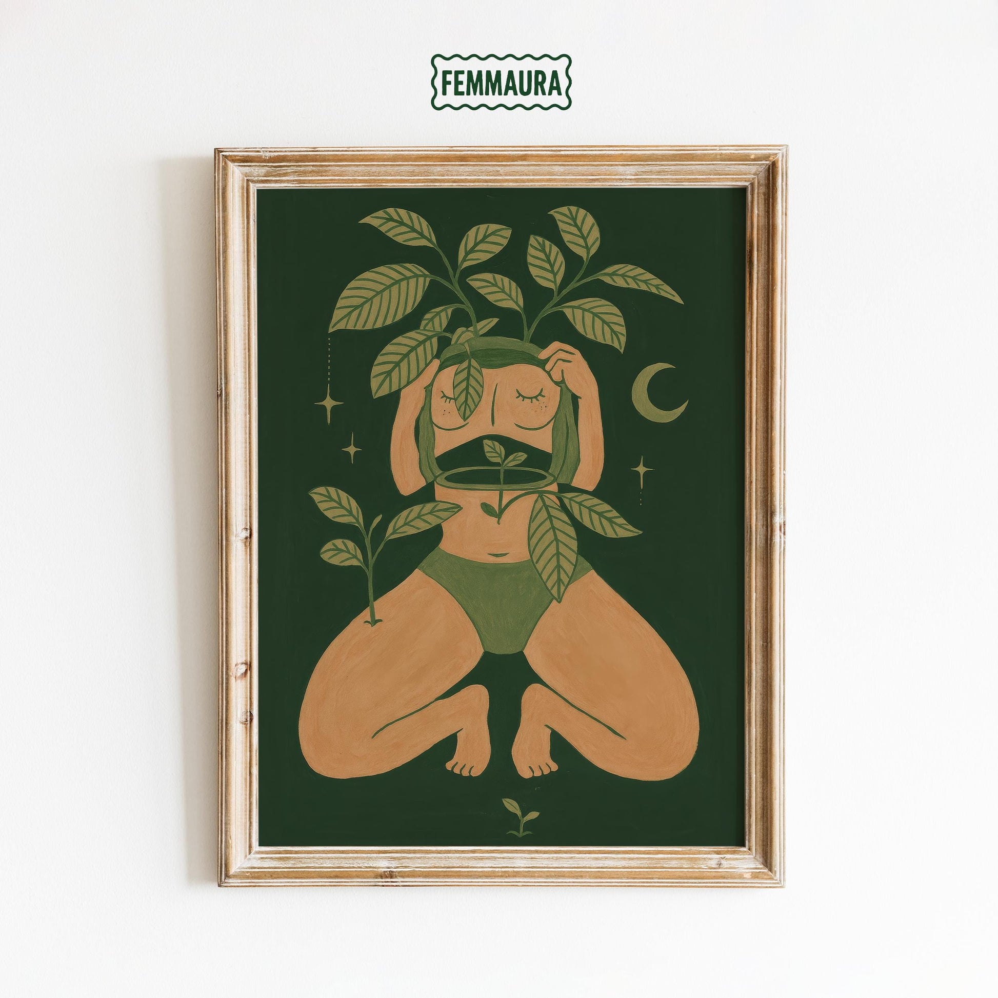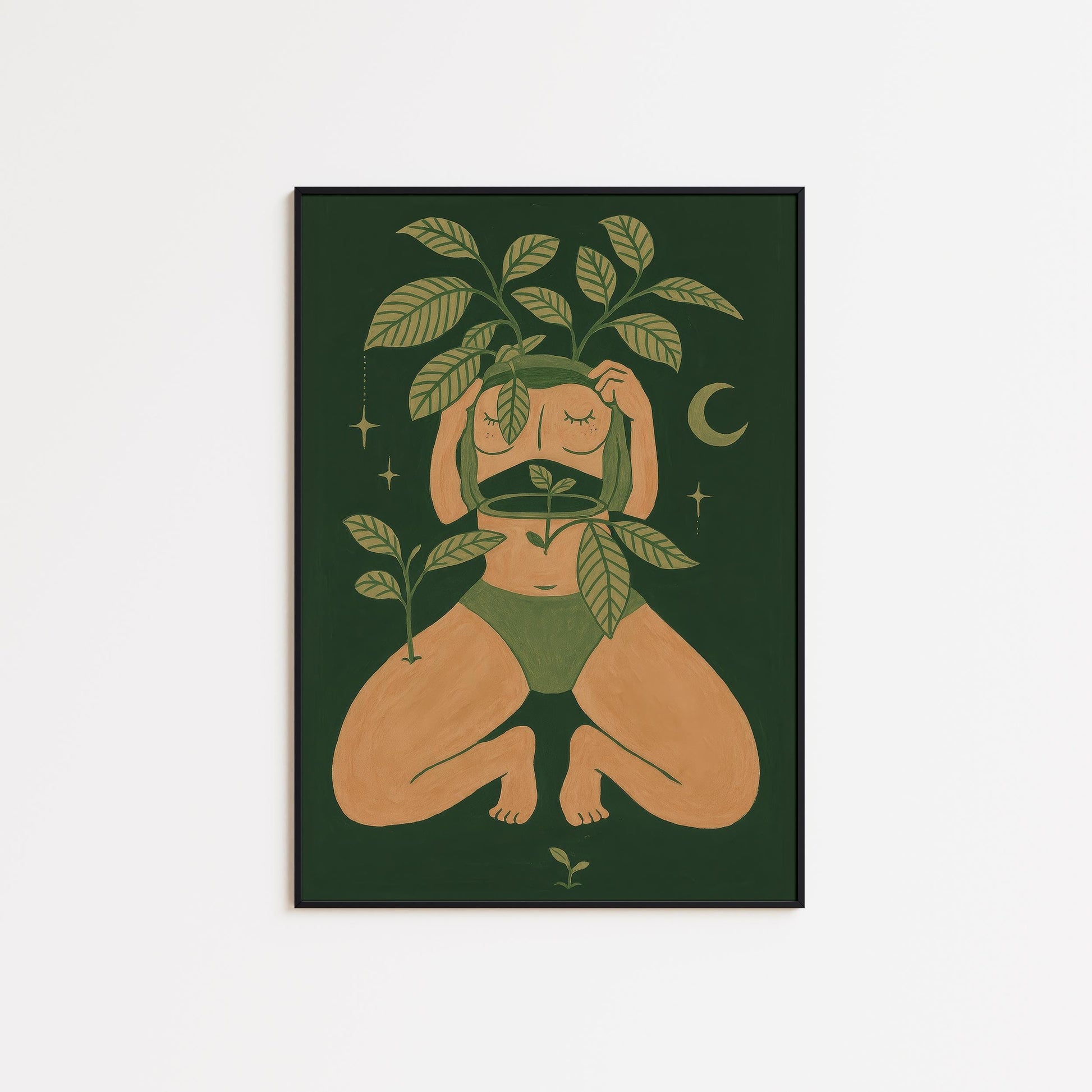 Botanical Moon Art Print – Feminine Wall Art | Self Love Poster for Boho Decor