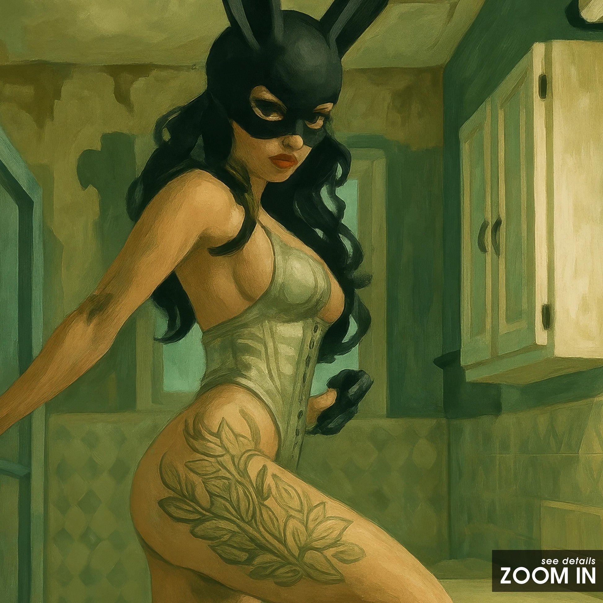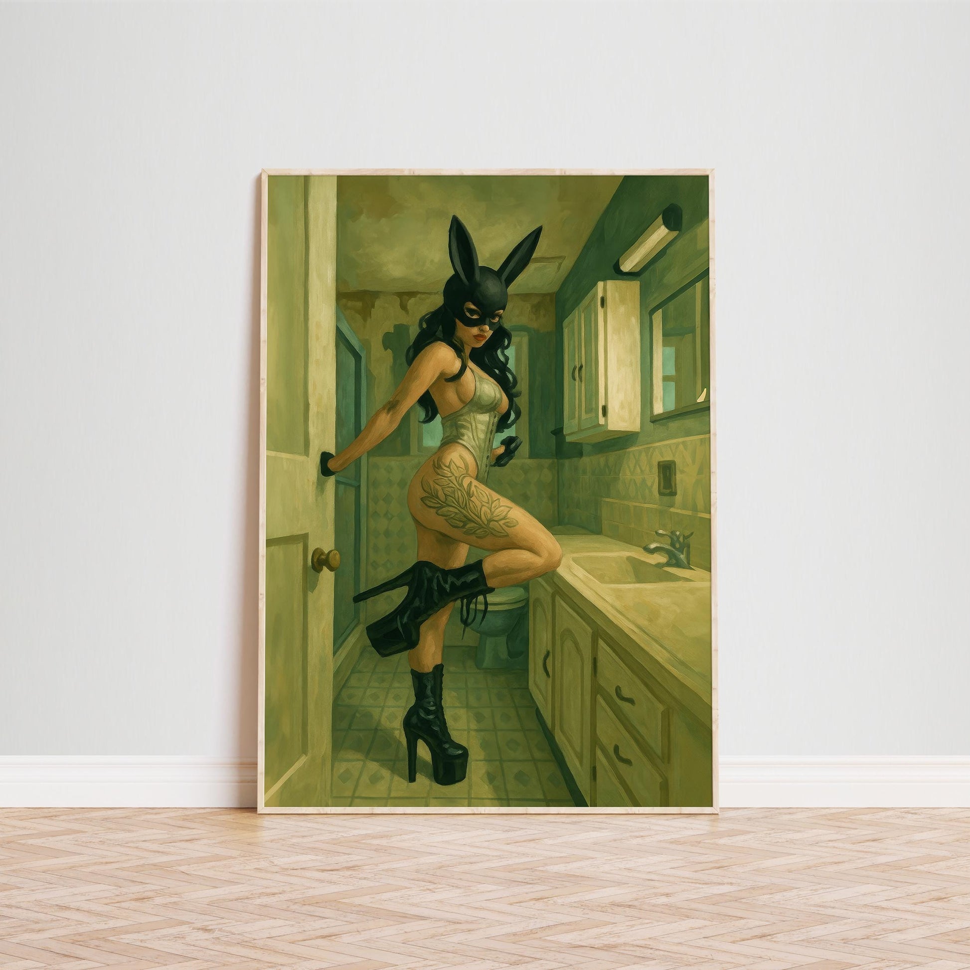 Bunny Mask Art Print – Bold Retro Woman Poster | Fetish Wall Art & Edgy Decor