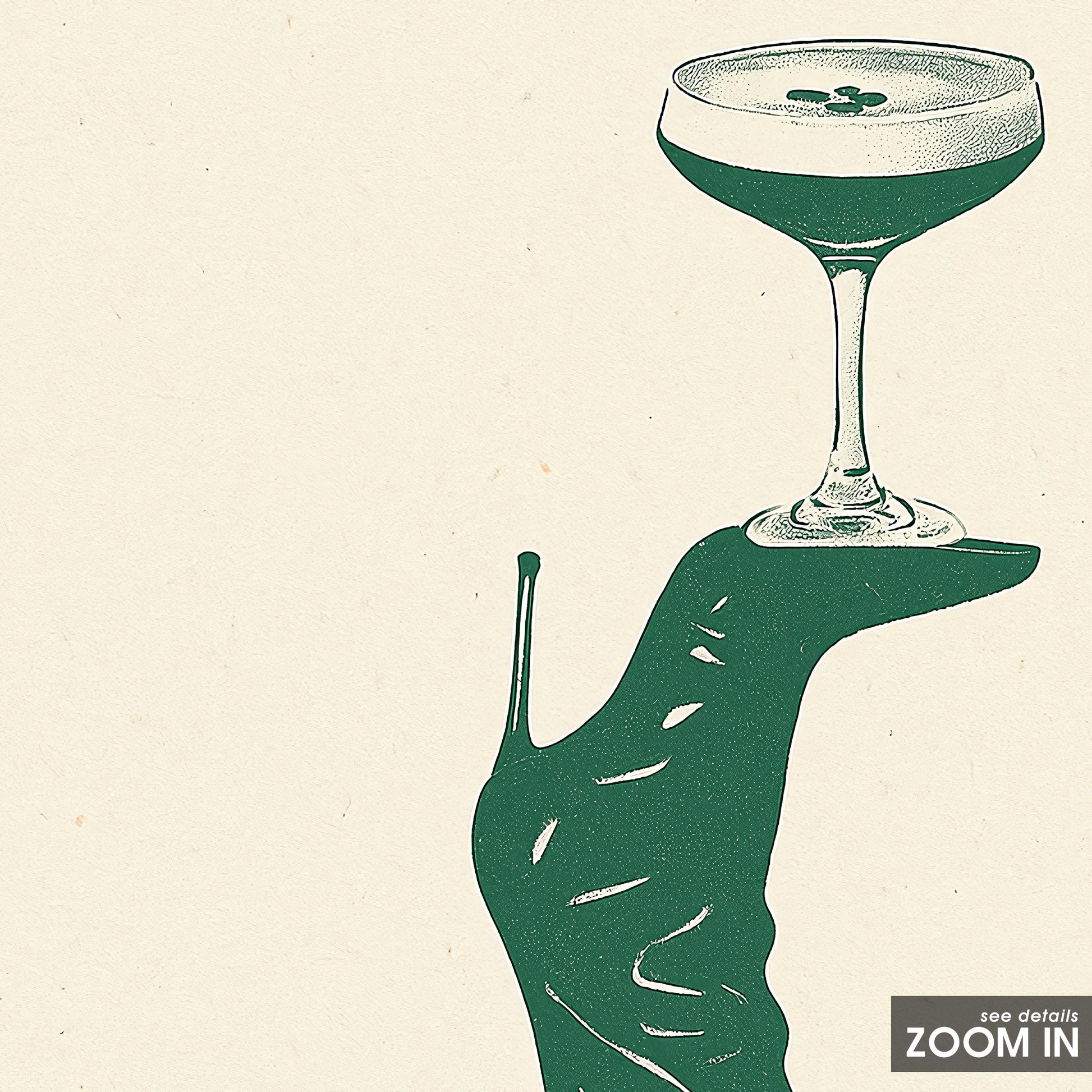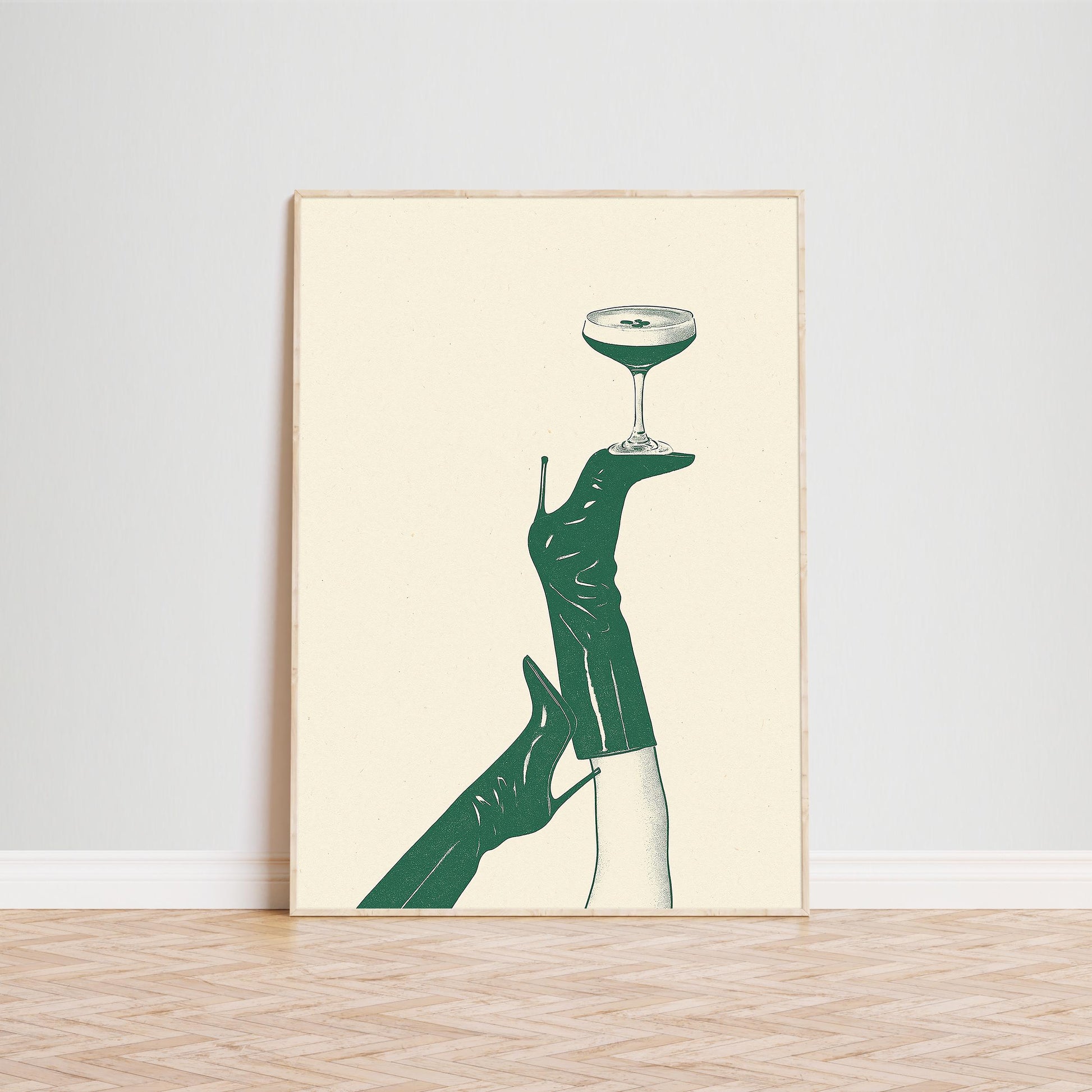 Champagne Balance Poster – Minimal Heels and Cocktail Line Art Print