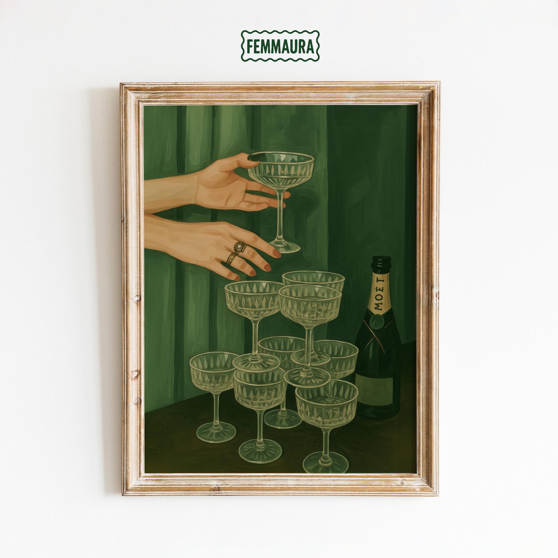 Champagne Glass Poster – Feminine Bar Art with Moët Bottle | Luxe Party Print