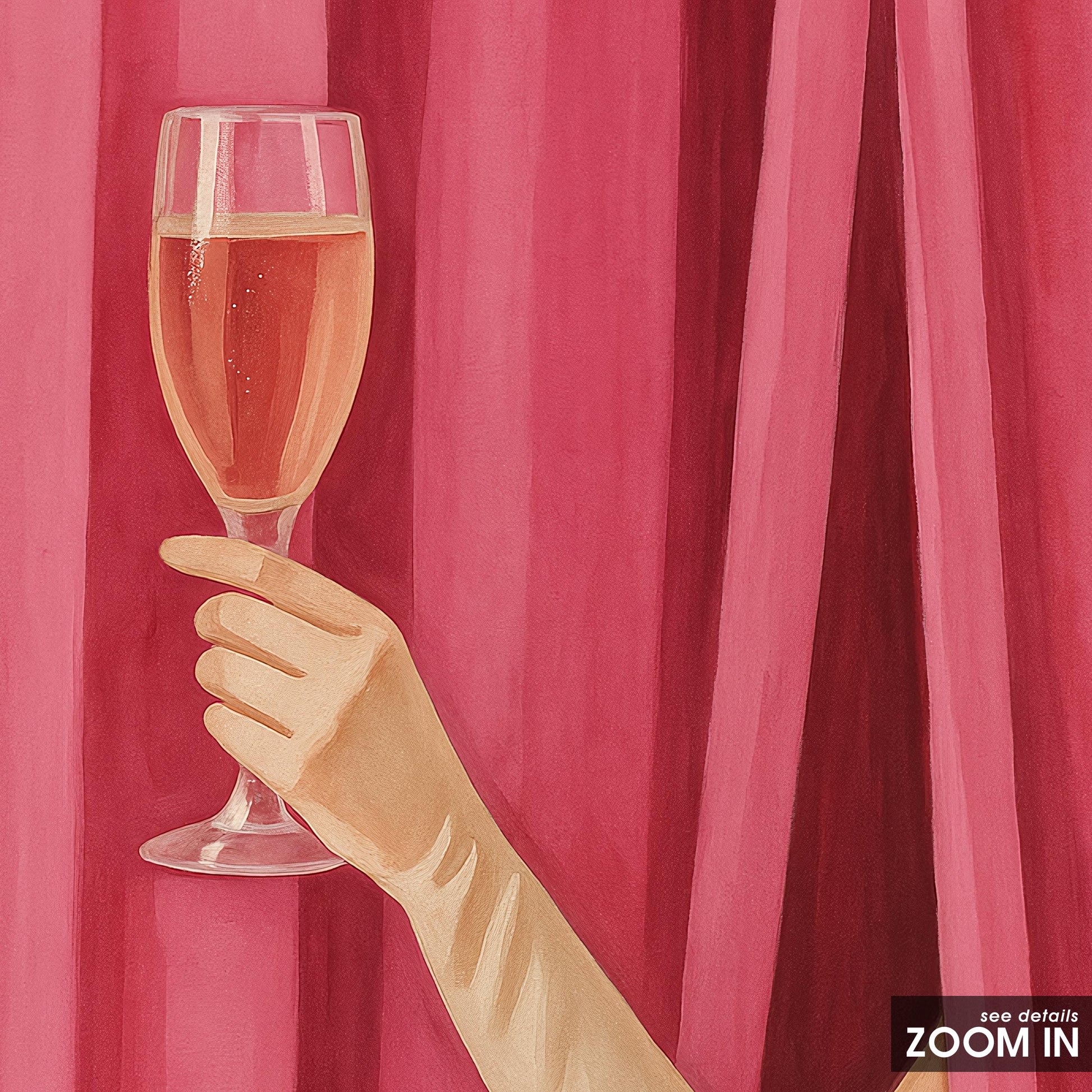 Champagne Wall Art – Elegant Glam Home Decor With Red Curtain And Sophisticated Style