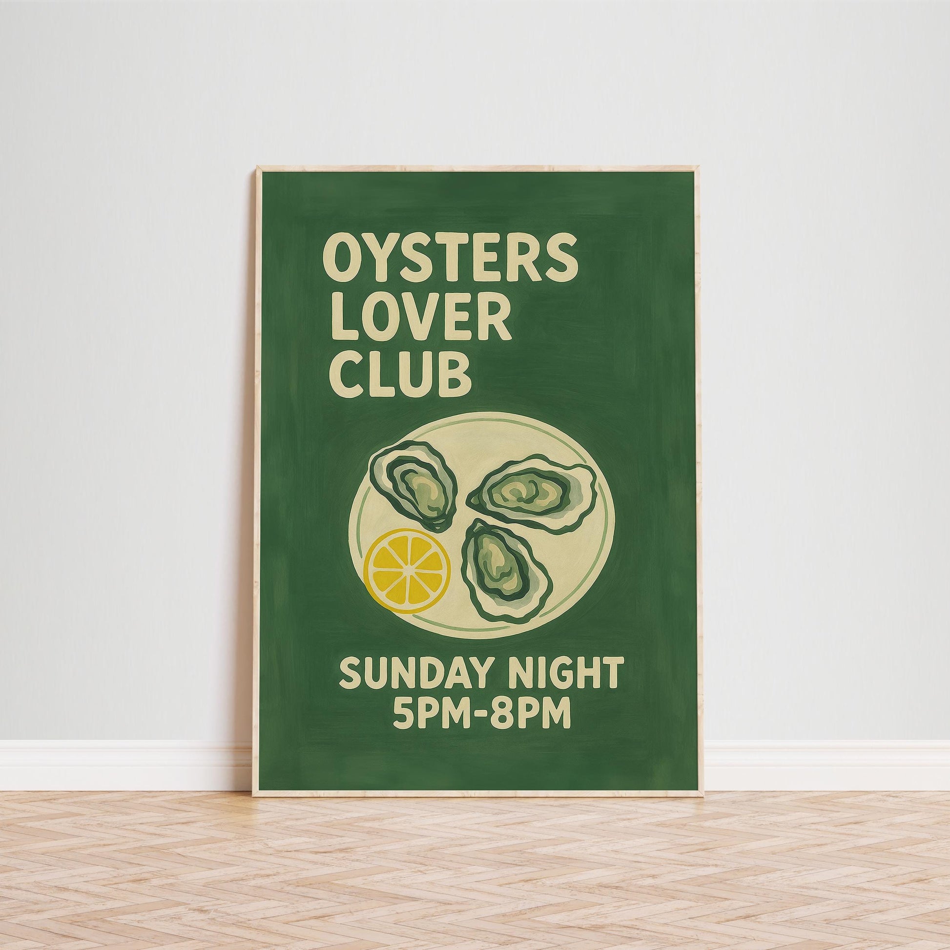 Coastal Kitchen Wall Art – Vintage Oyster Bar Sign | Seafood Bistro Print