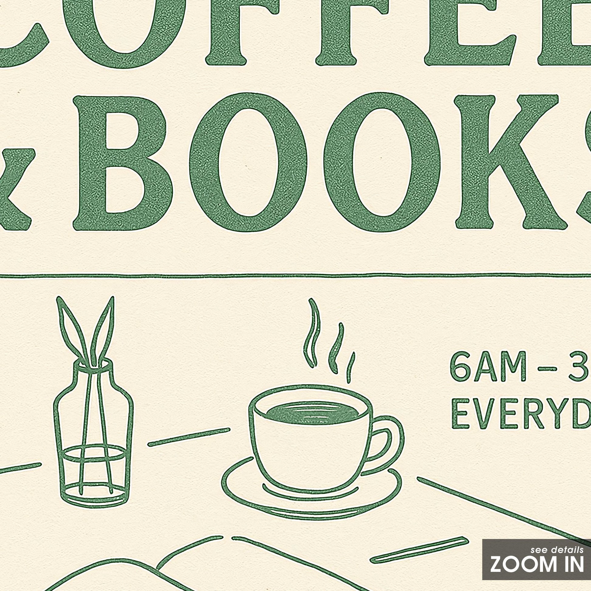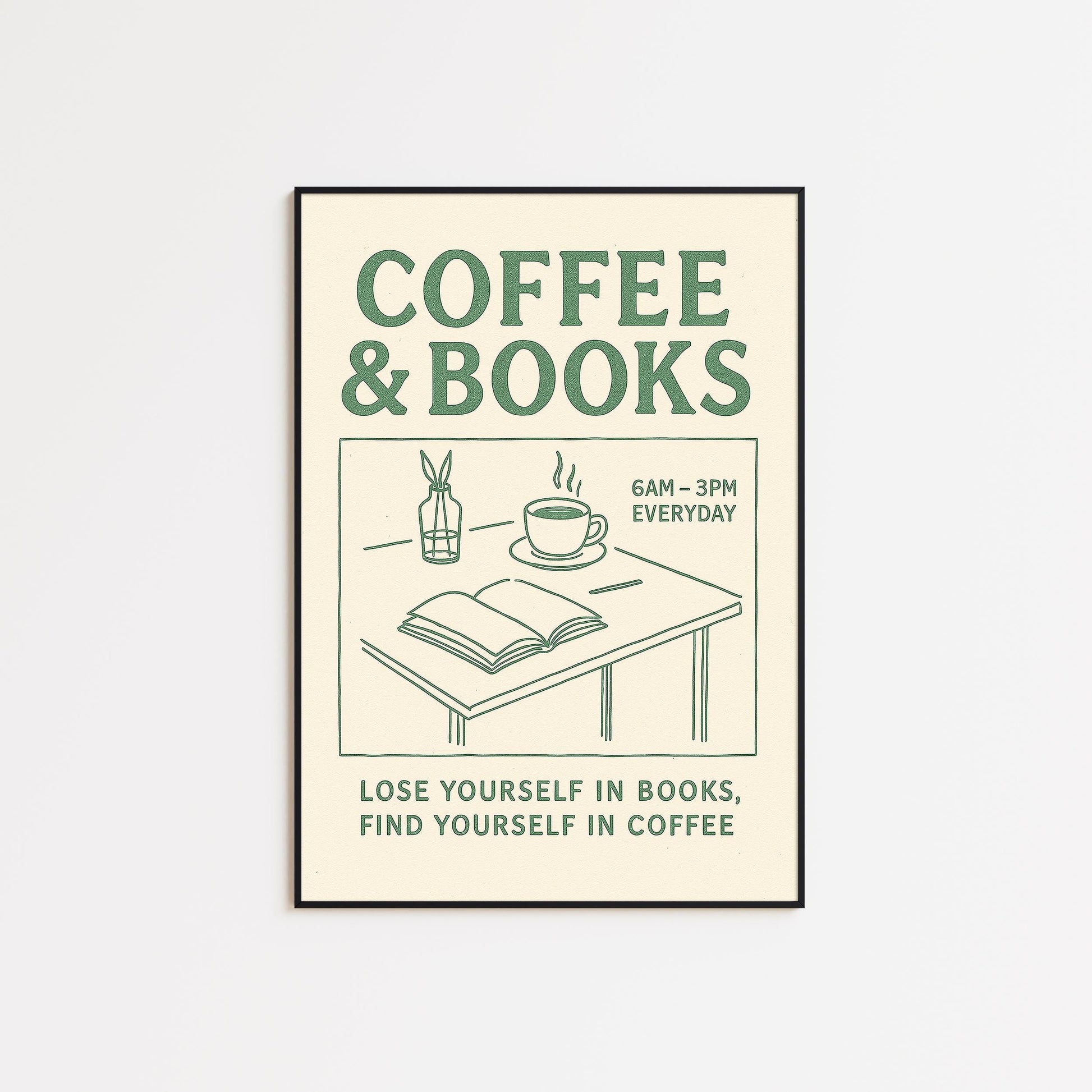 Minimalist Café Wall Art – Coffee Poster with Vintage Book Lover Print