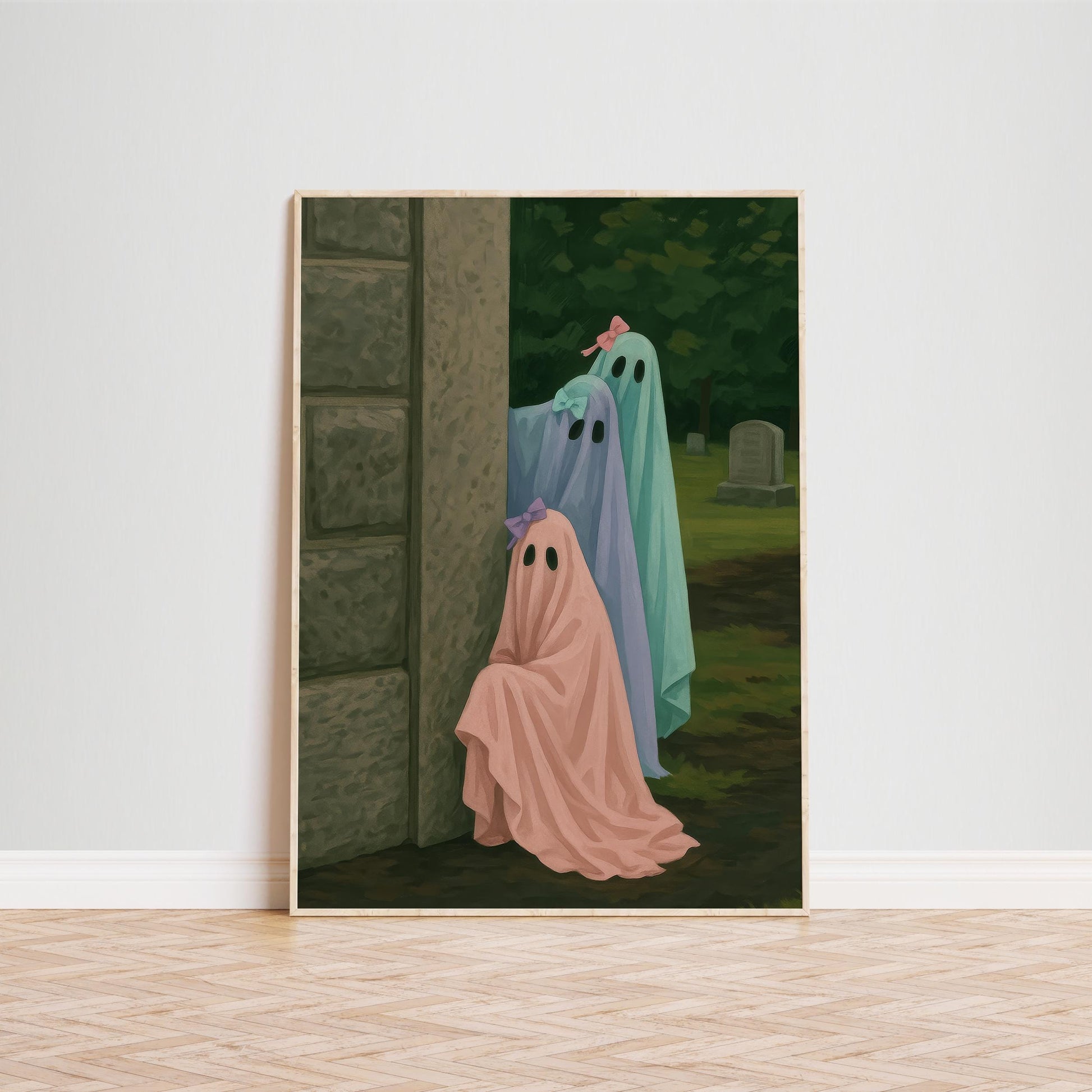 Colorful Ghost Wall Art – Whimsical Pastel Trio Print | Gothic Decor