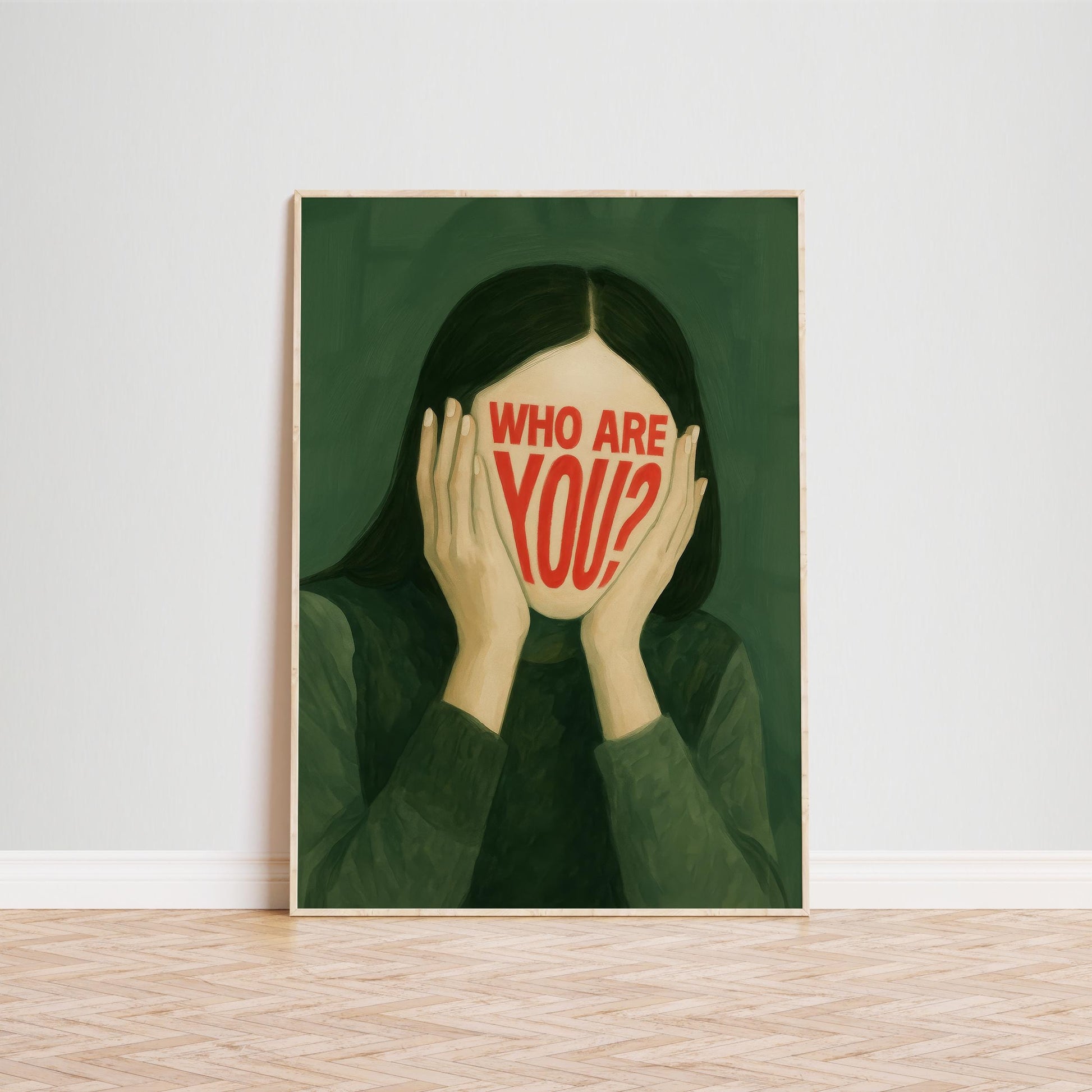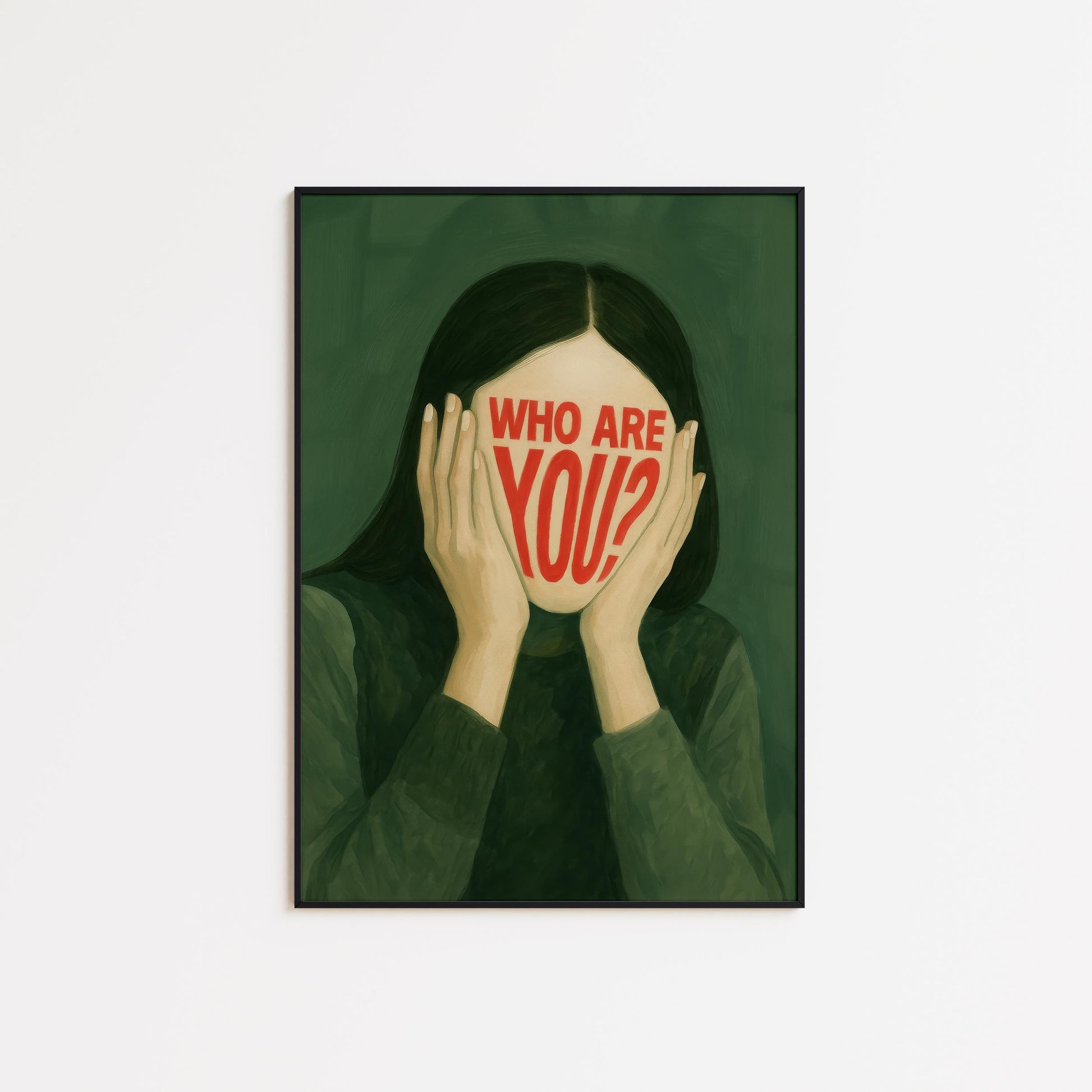 Conceptual Surreal Wall Art – Typography Portrait Print With Bold Red Green Contrast
