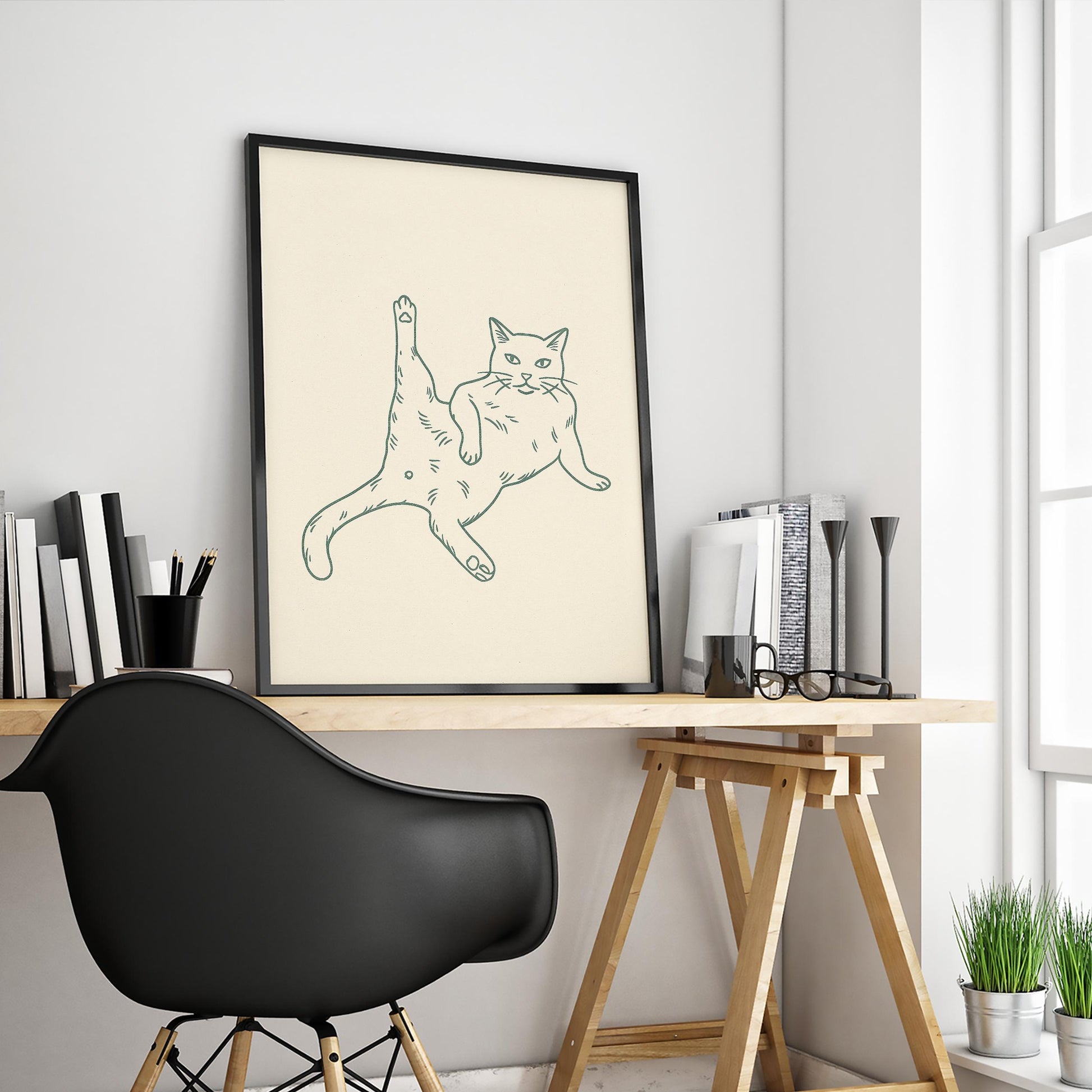 Confident Cat Poster – Minimalist Funny Line Art Print