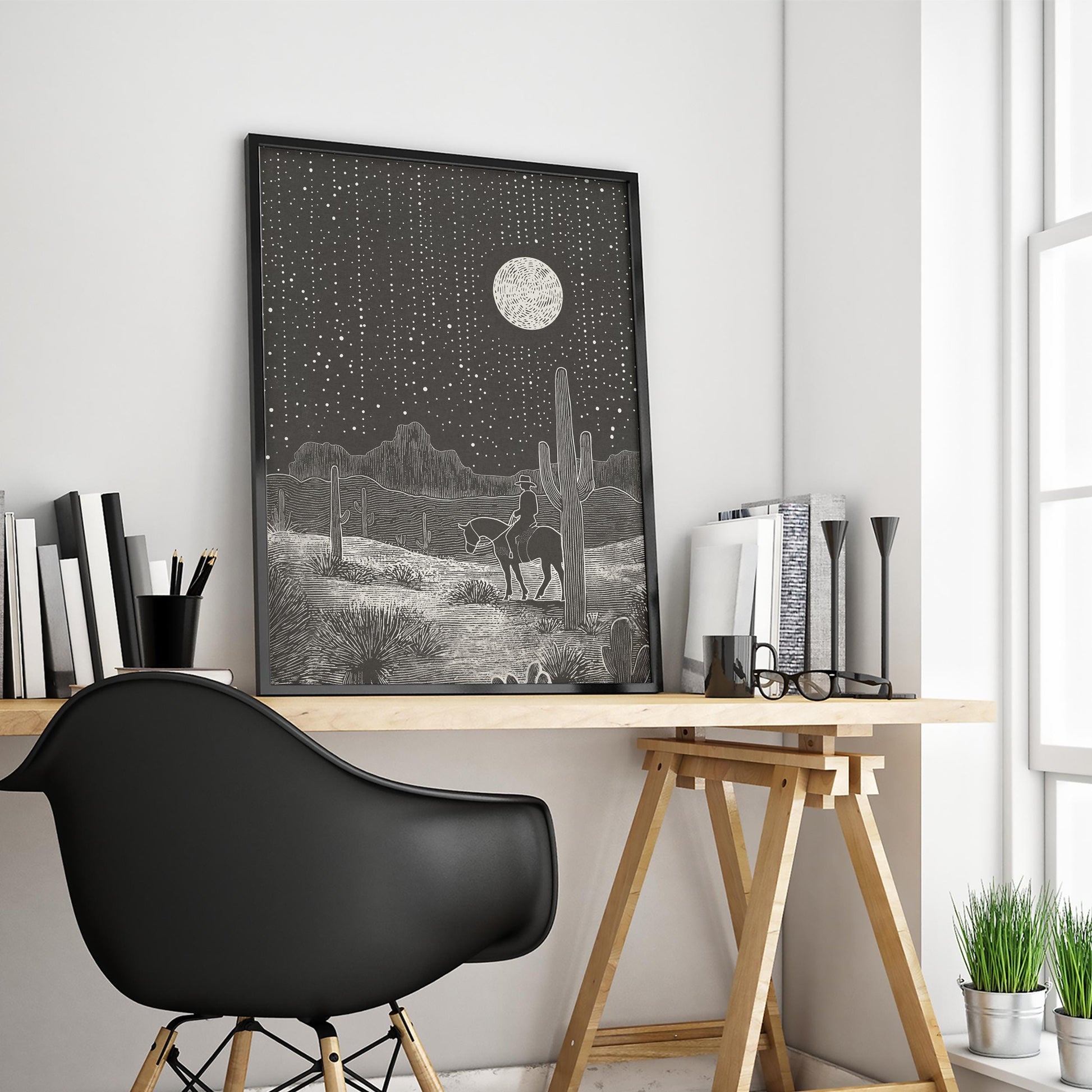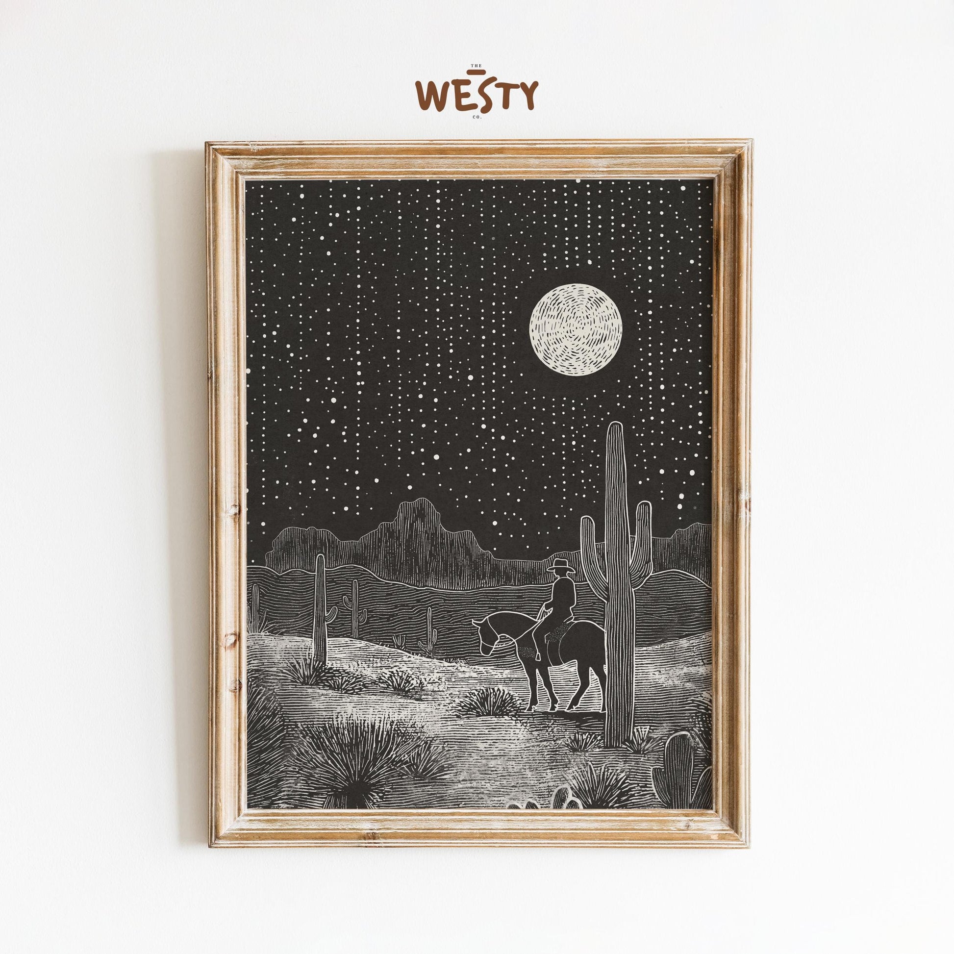 Cowboy Under Moonlight – Western Desert Night Poster