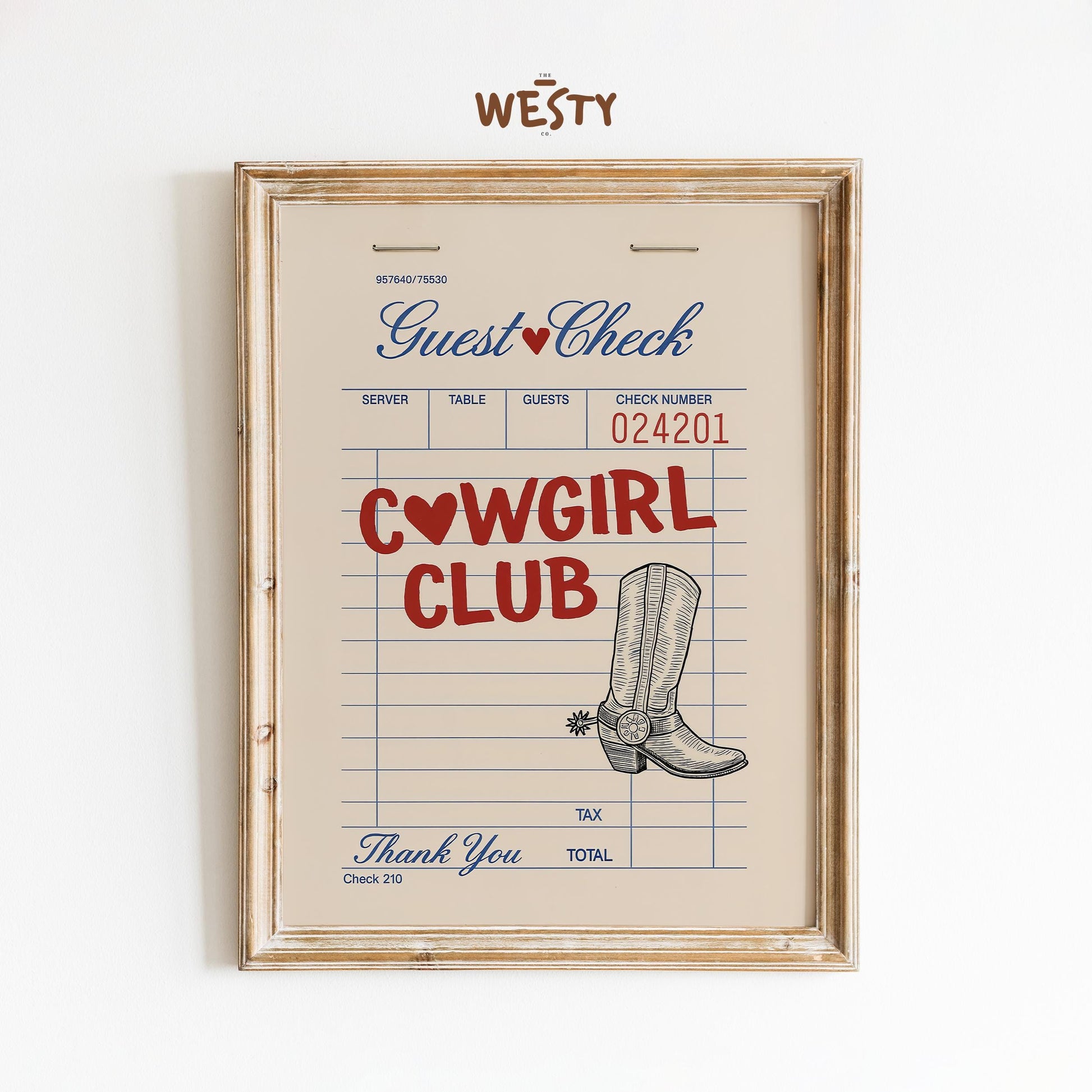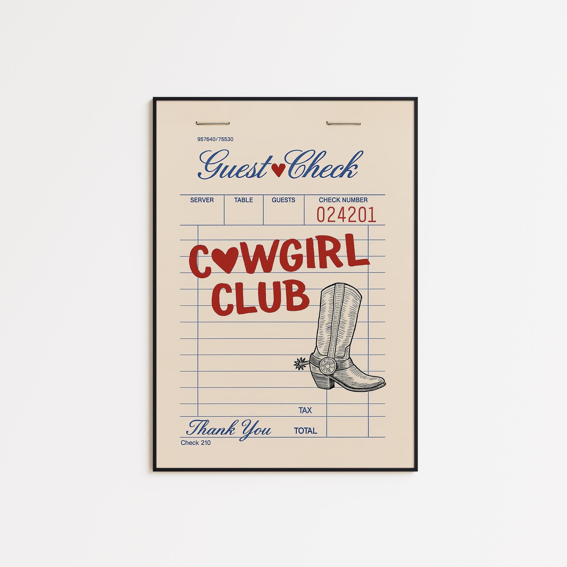 Cowgirl Club Diner Check Poster – Western Retro Wall Art for Cowgirl Decor