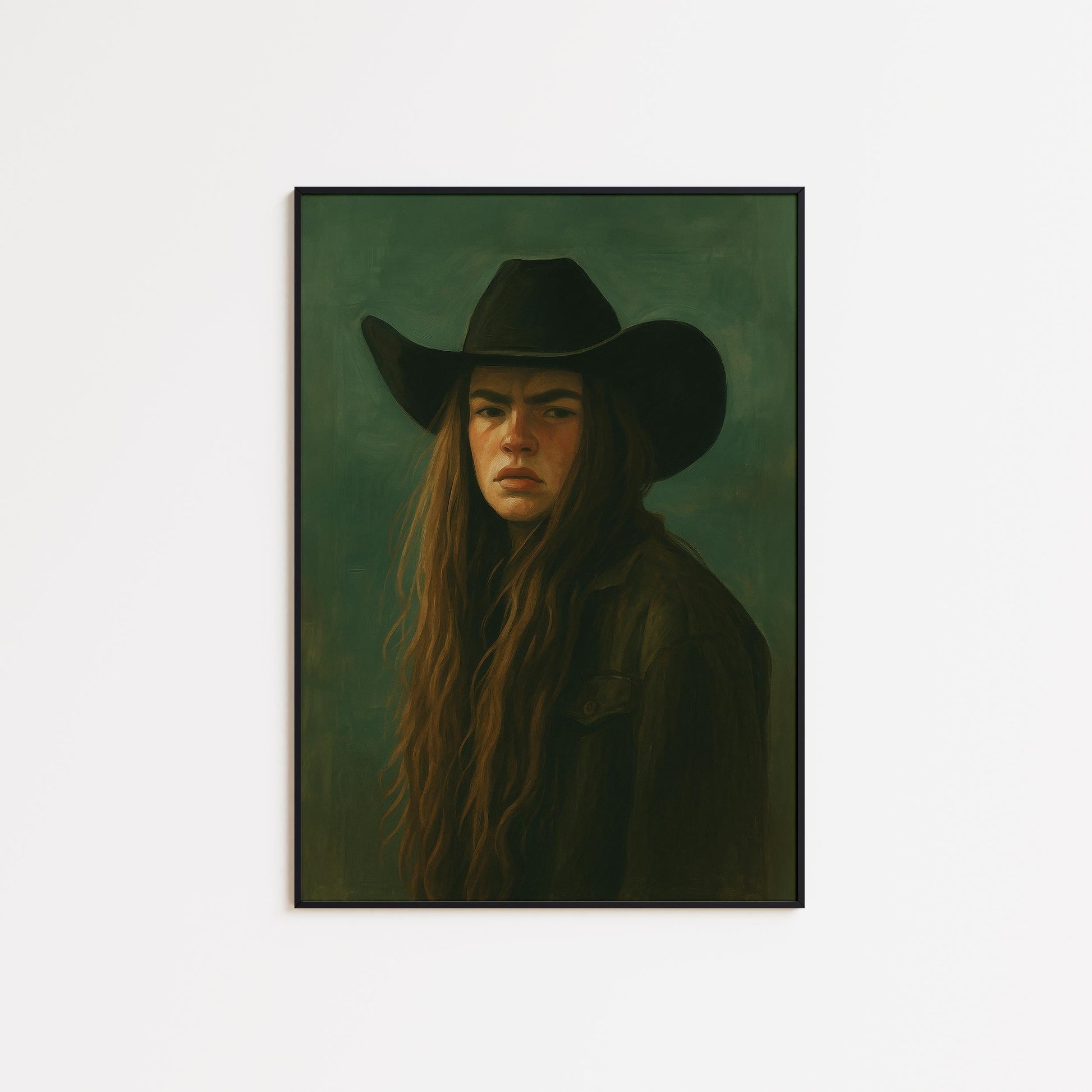 Cowgirl Shadow Poster – Moody Western Wall Art | Bold Rustic Chic Print