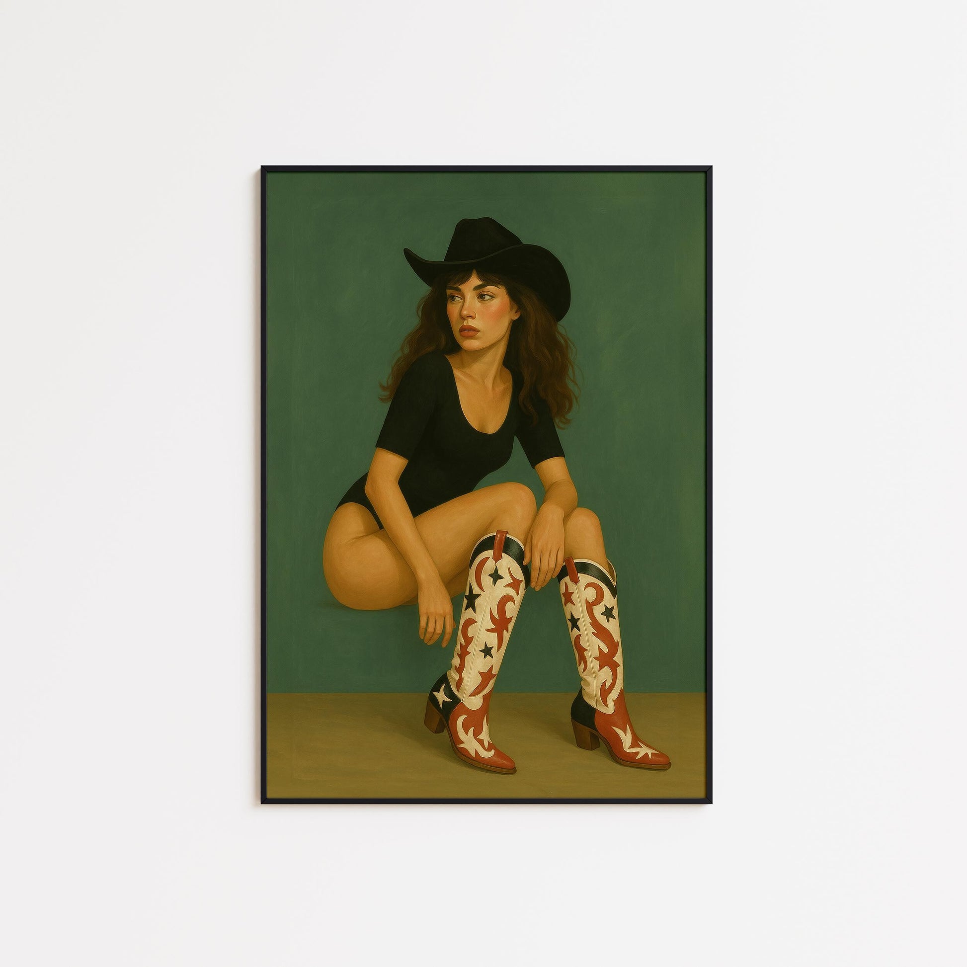 Cowgirl Squat Poster – Retro Western Wall Art With Bold Cowgirl Boots Print