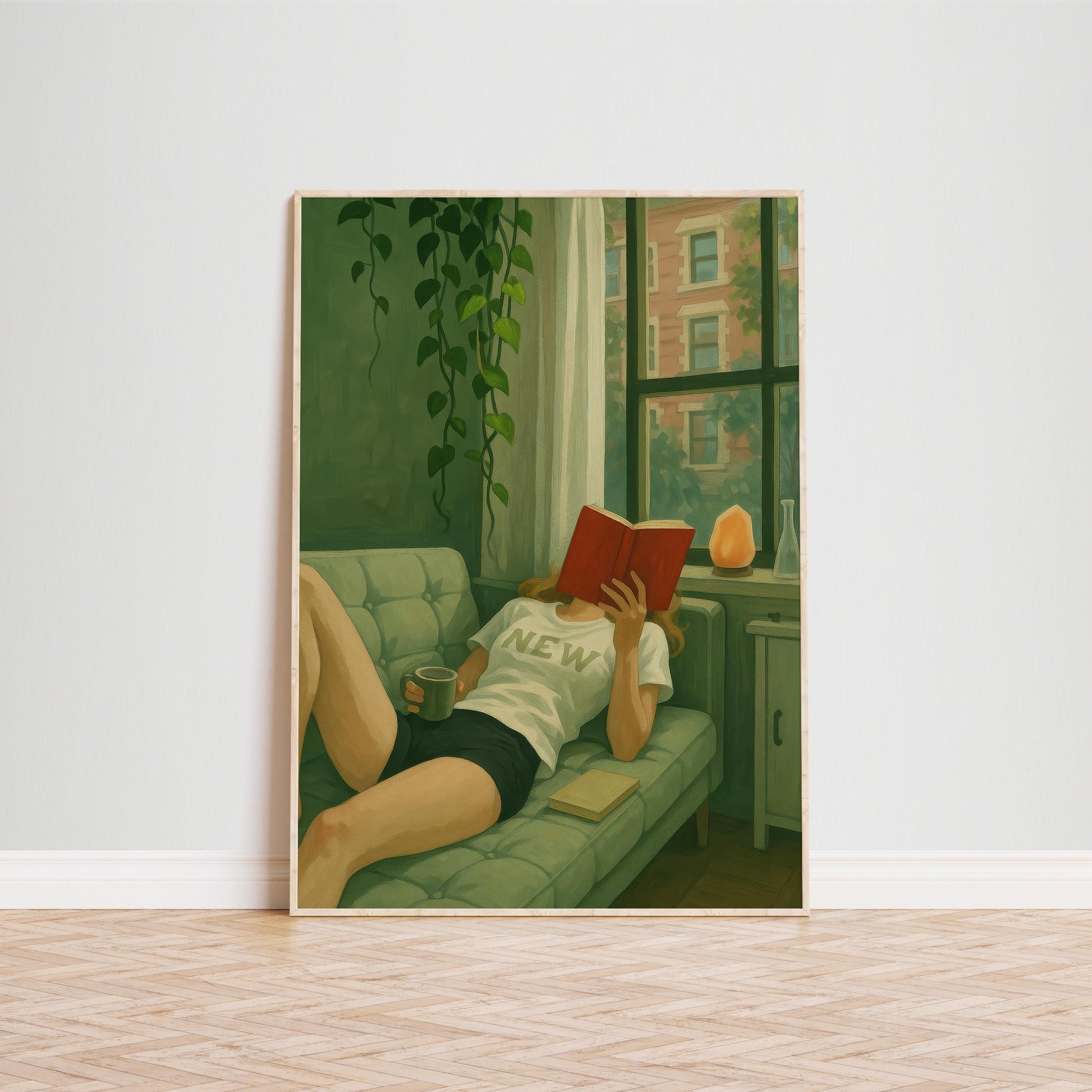 Cozy Reading Corner Art – Living Room Wall Art With Book and Coffee Print