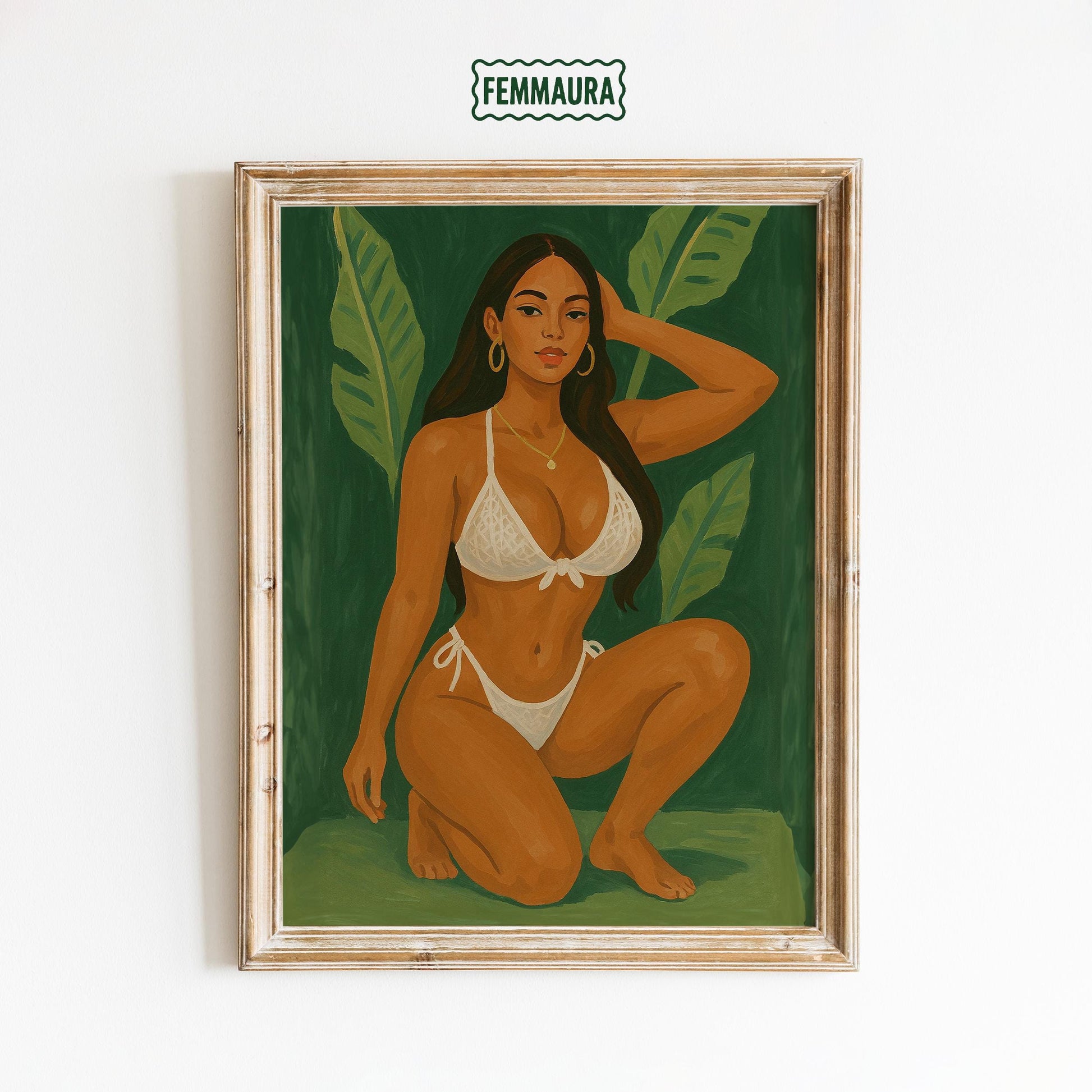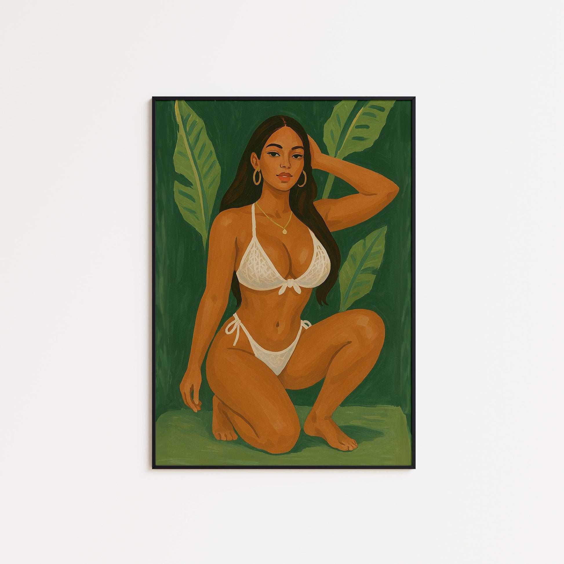 Curvy Goddess Art Print - Tropical Wall Art | Empowering Boudoir Poster, Feminine Bedroom Decor