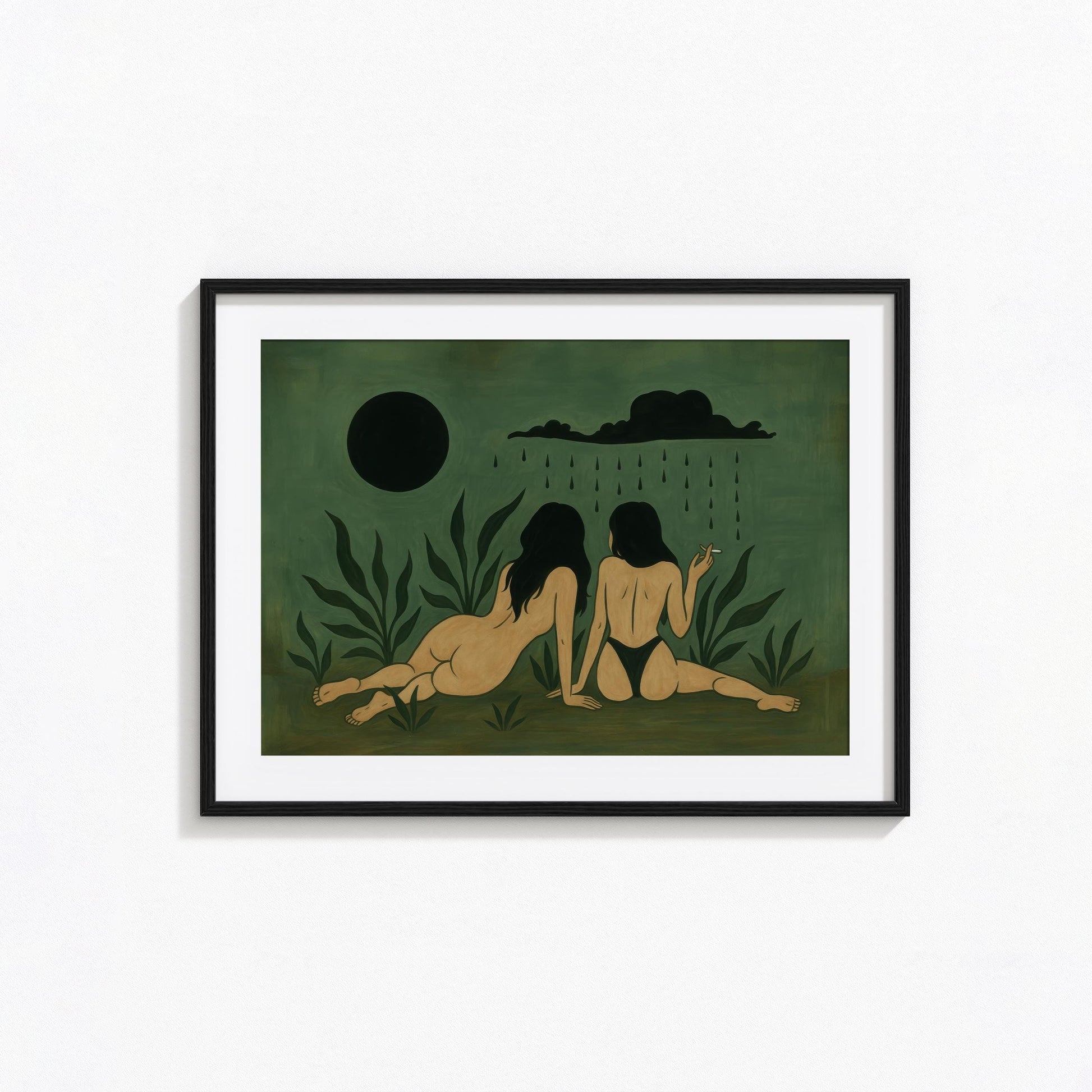 Dark Feminine Art Print – Witchy Wall Decor Featuring Rain & Moon Illustration