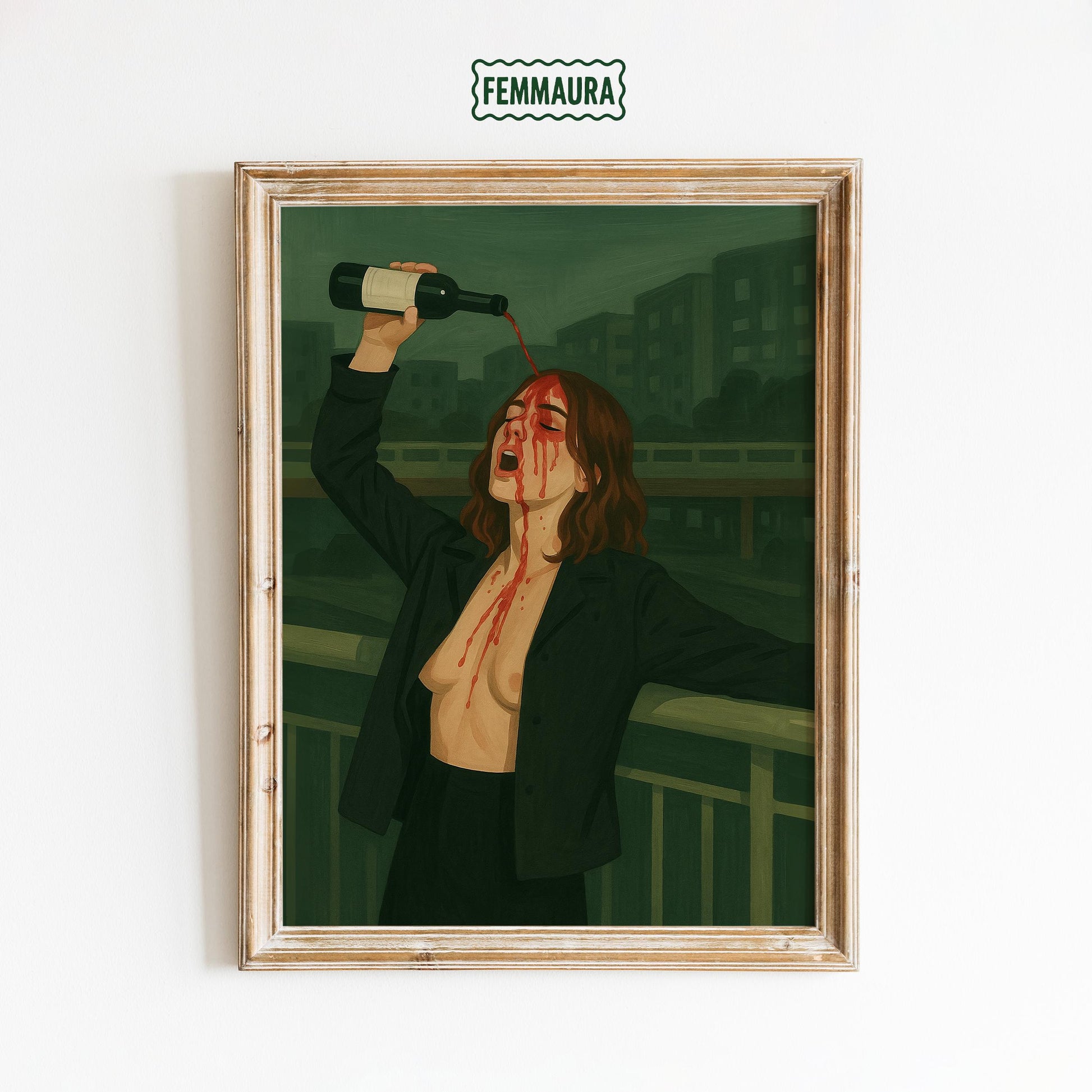 Dark Wine Poster – Bold Feminine Expression Art | Surreal Wine Wall Decor