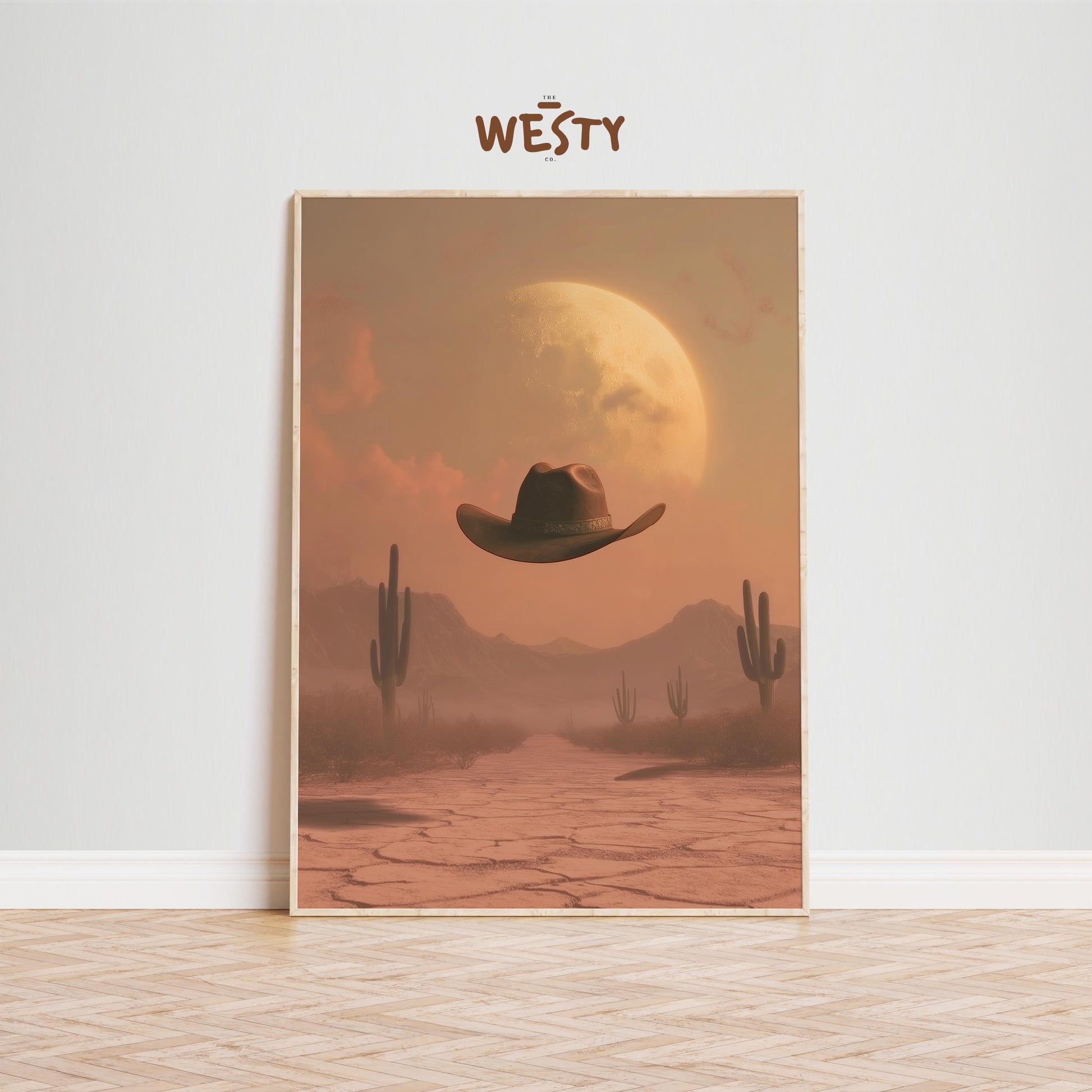 Desert Moon Cowboy Hat – Surreal Western Wall Art