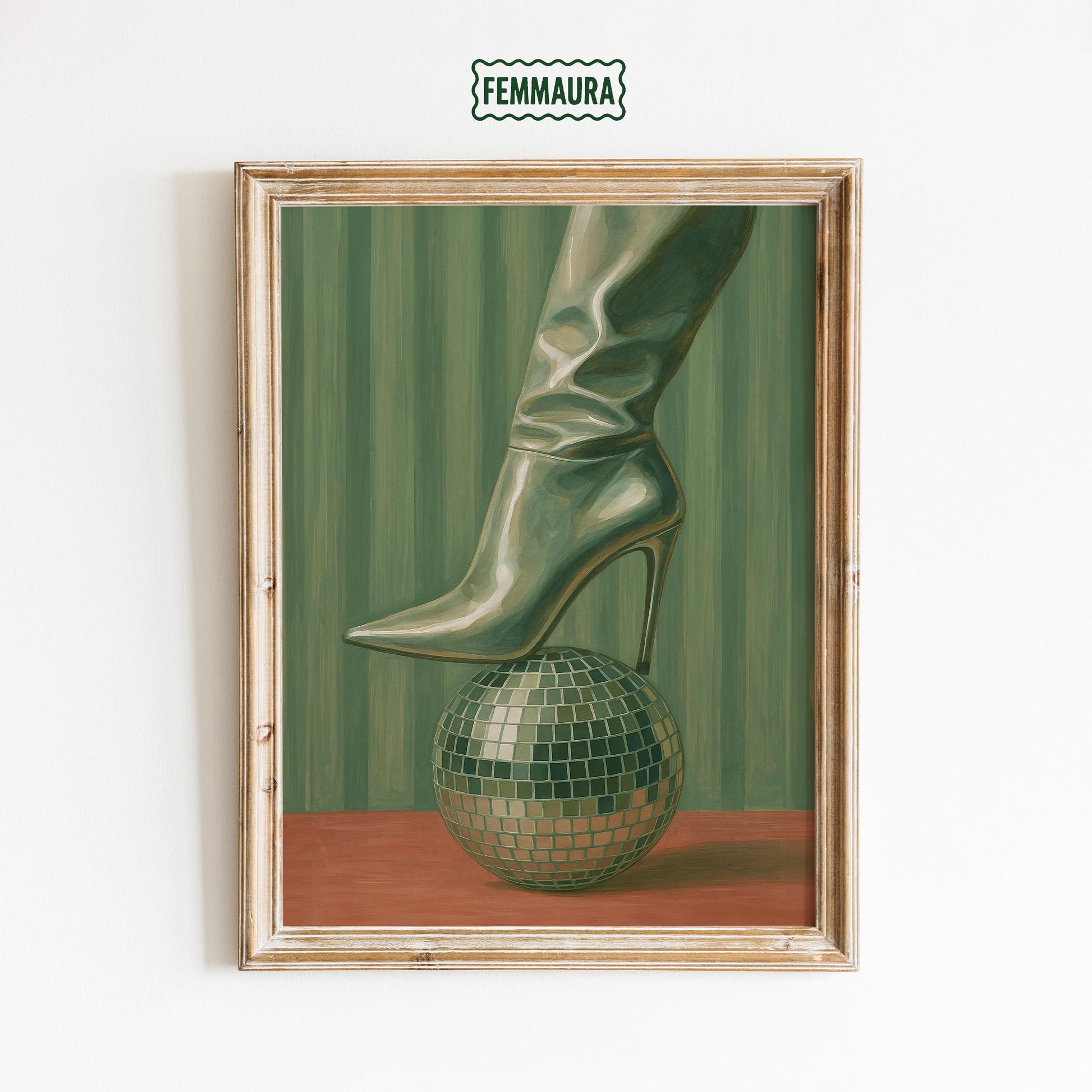 Disco Ball Poster – Retro Fashion Print With Stylish Boot Artwork & Feminist Wall Art