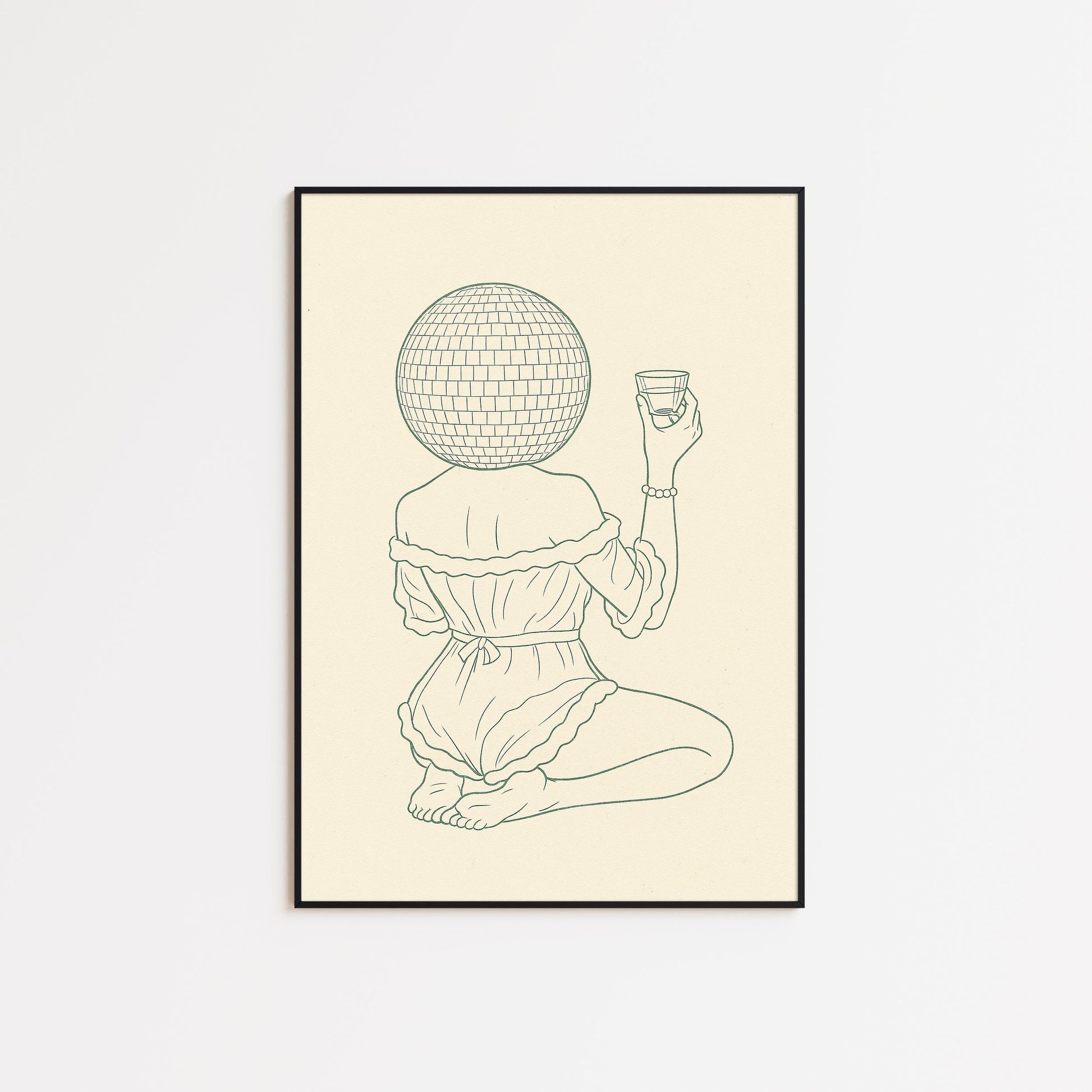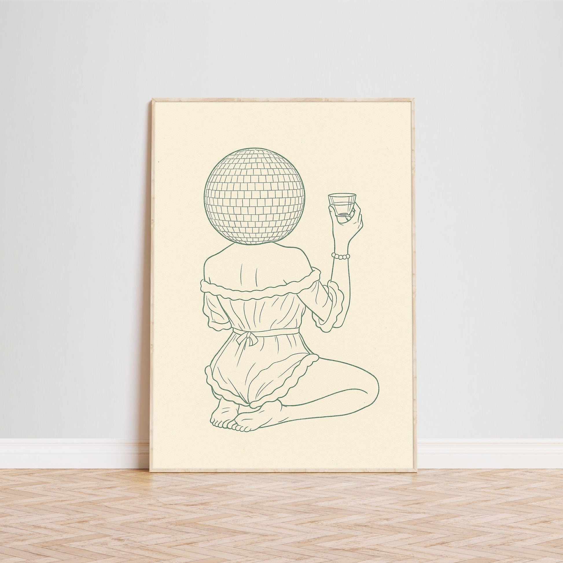 Disco Girl Line Art Print – Minimalist Retro Wall Art, Modern Feminine Poster