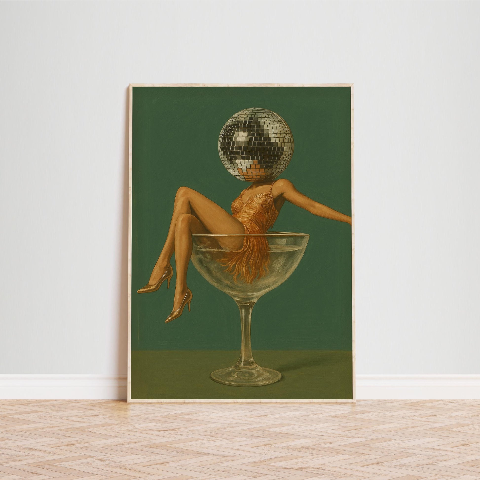Disco Lady Poster – Retro Glam Art | Vintage Nightlife Print & Bold Green Gold Design