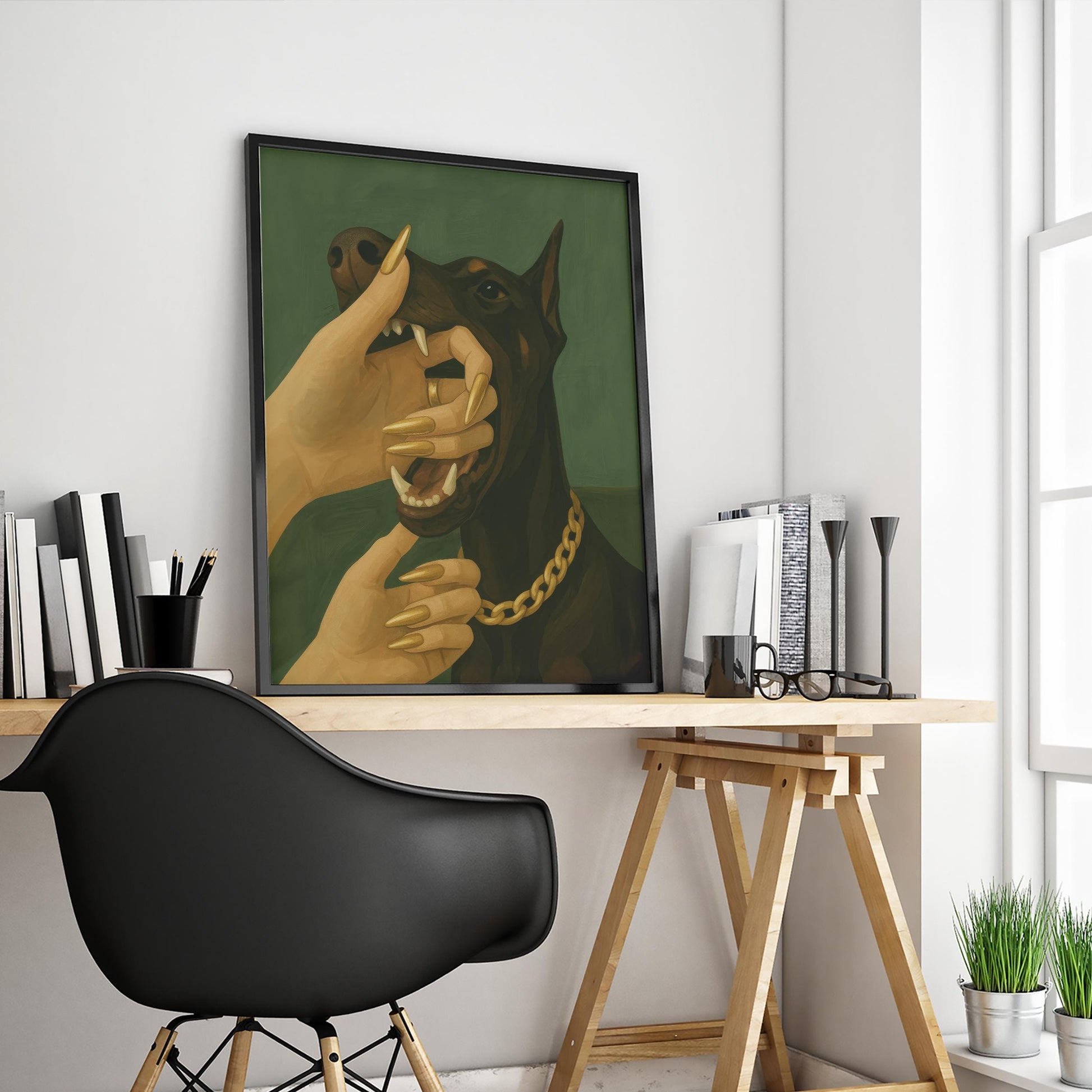 Doberman Wall Art – Dark Feminine Poster With Golden Nail Gothic Decor