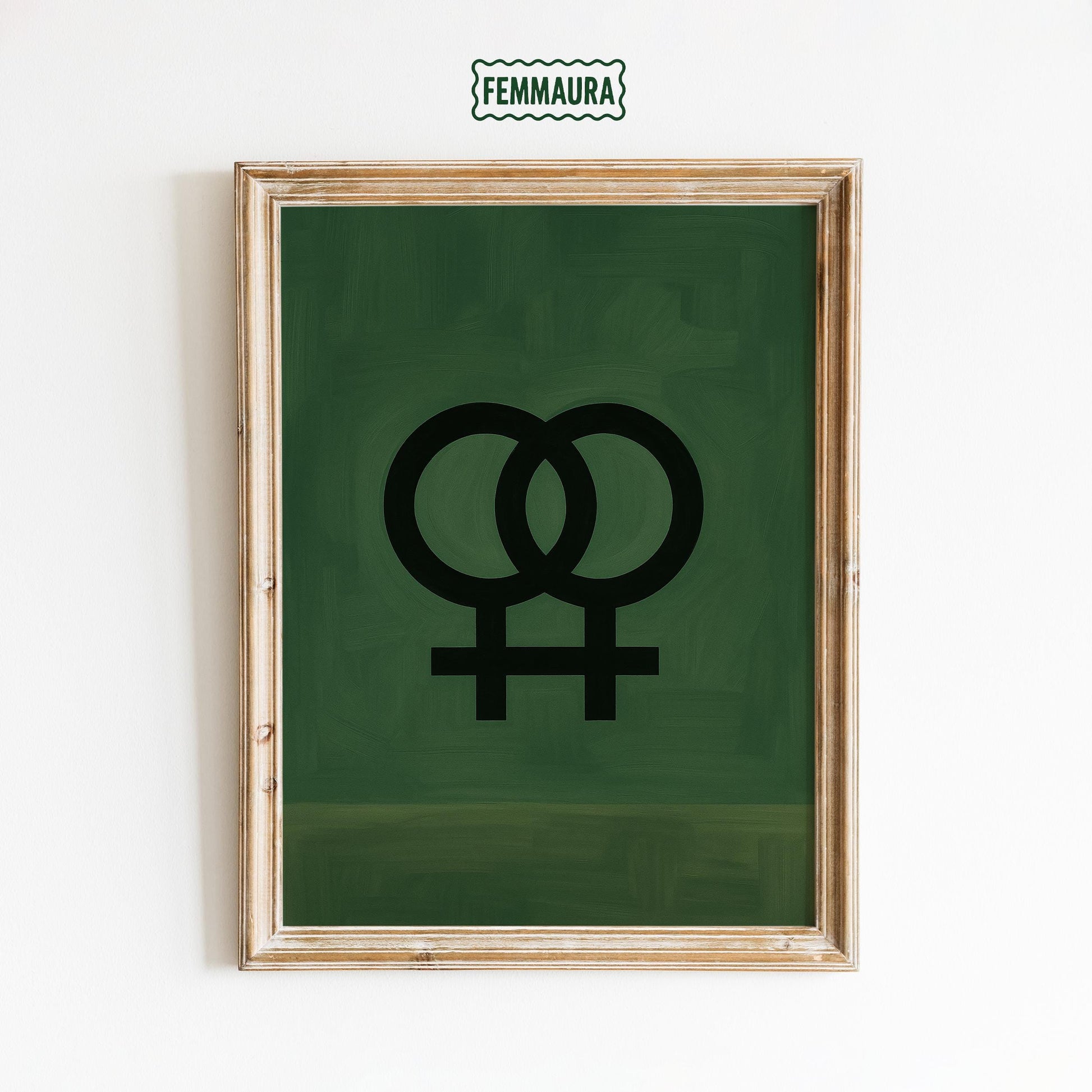 Double Venus Symbol Poster – Minimalist Feminist Wall Art With Moody Green Background