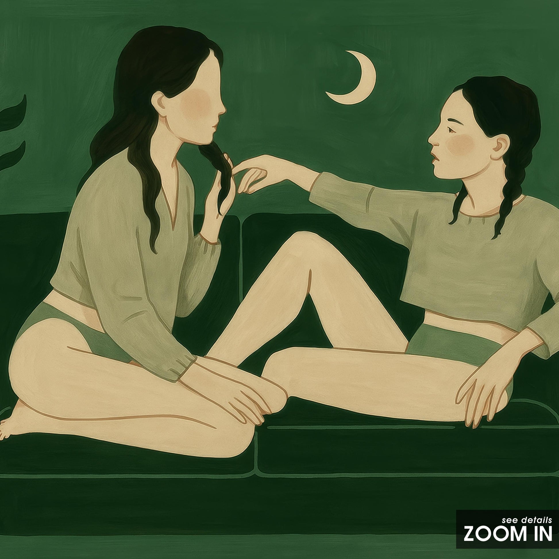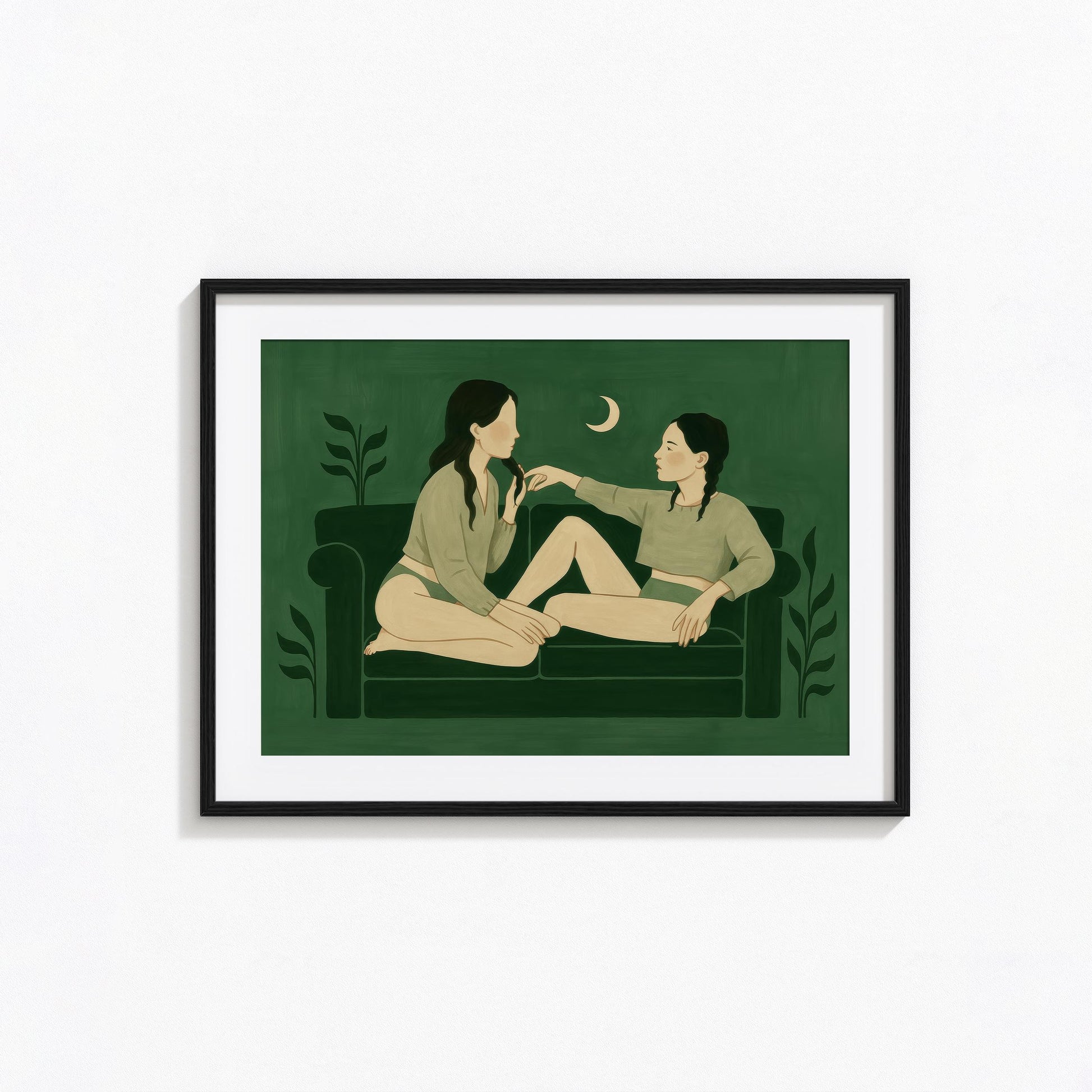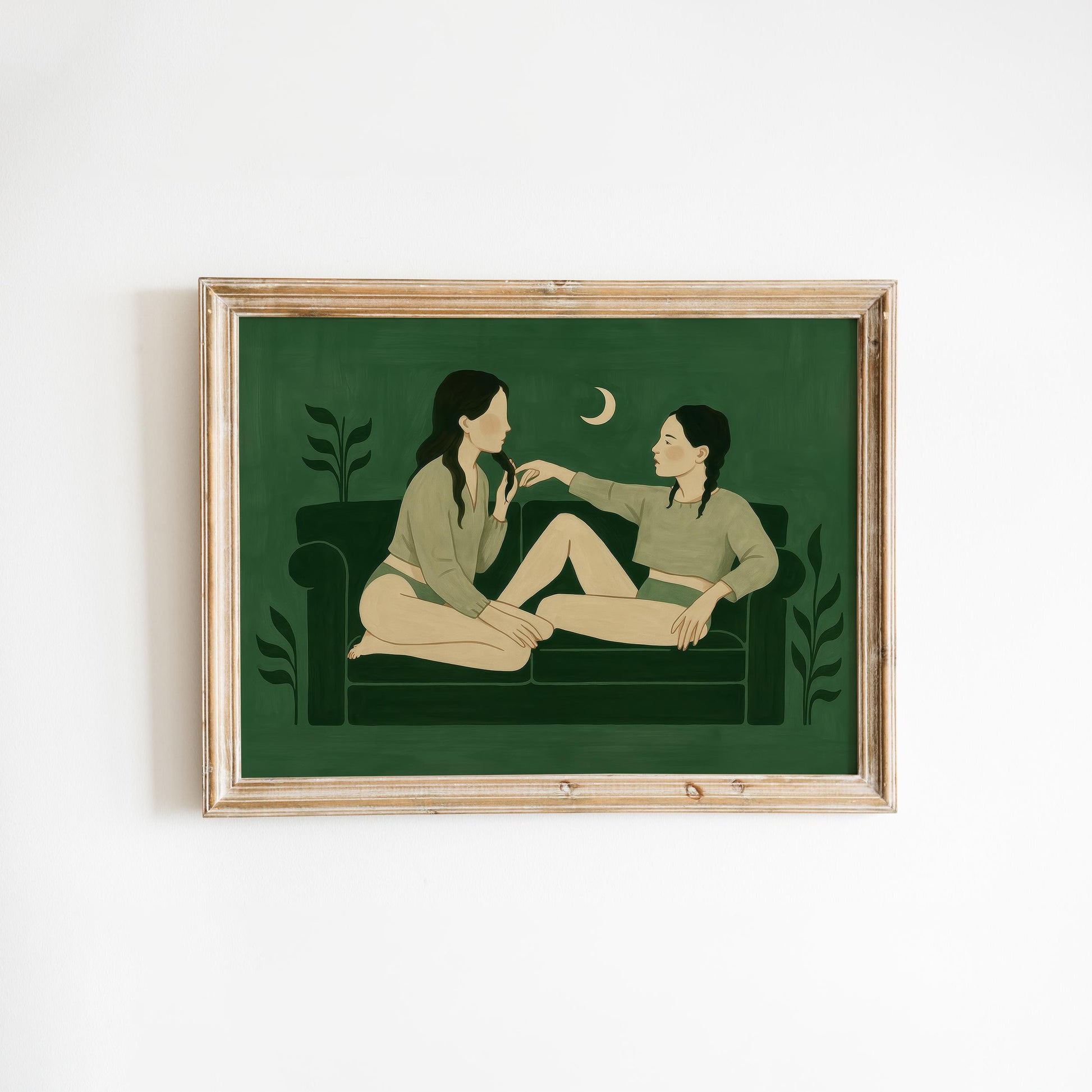 Emotional Green Wall Art – Queer Love Print | Cozy Night Artwork for Feminine Room Decor