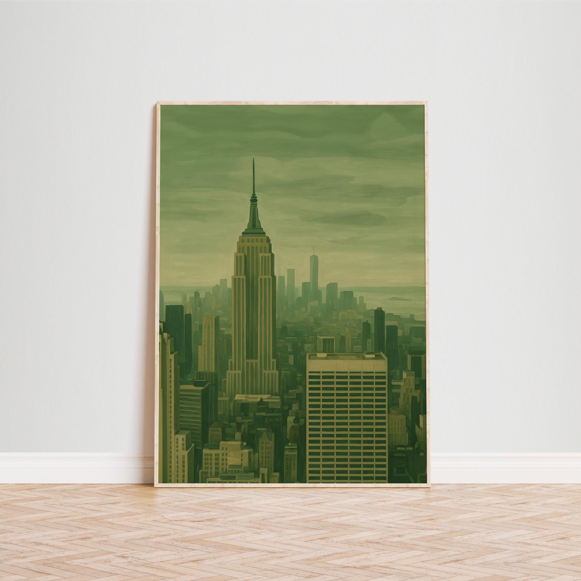 Empire State Building Poster – Moody Green Wall Art | New York City Skyline Print