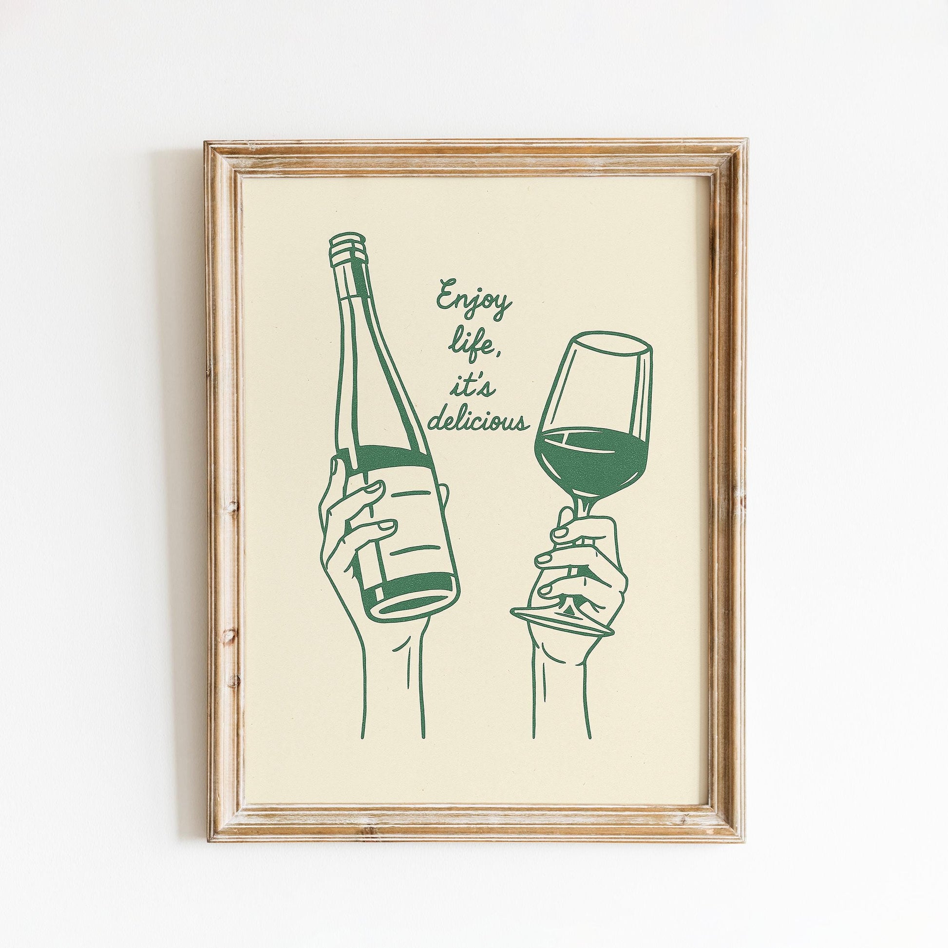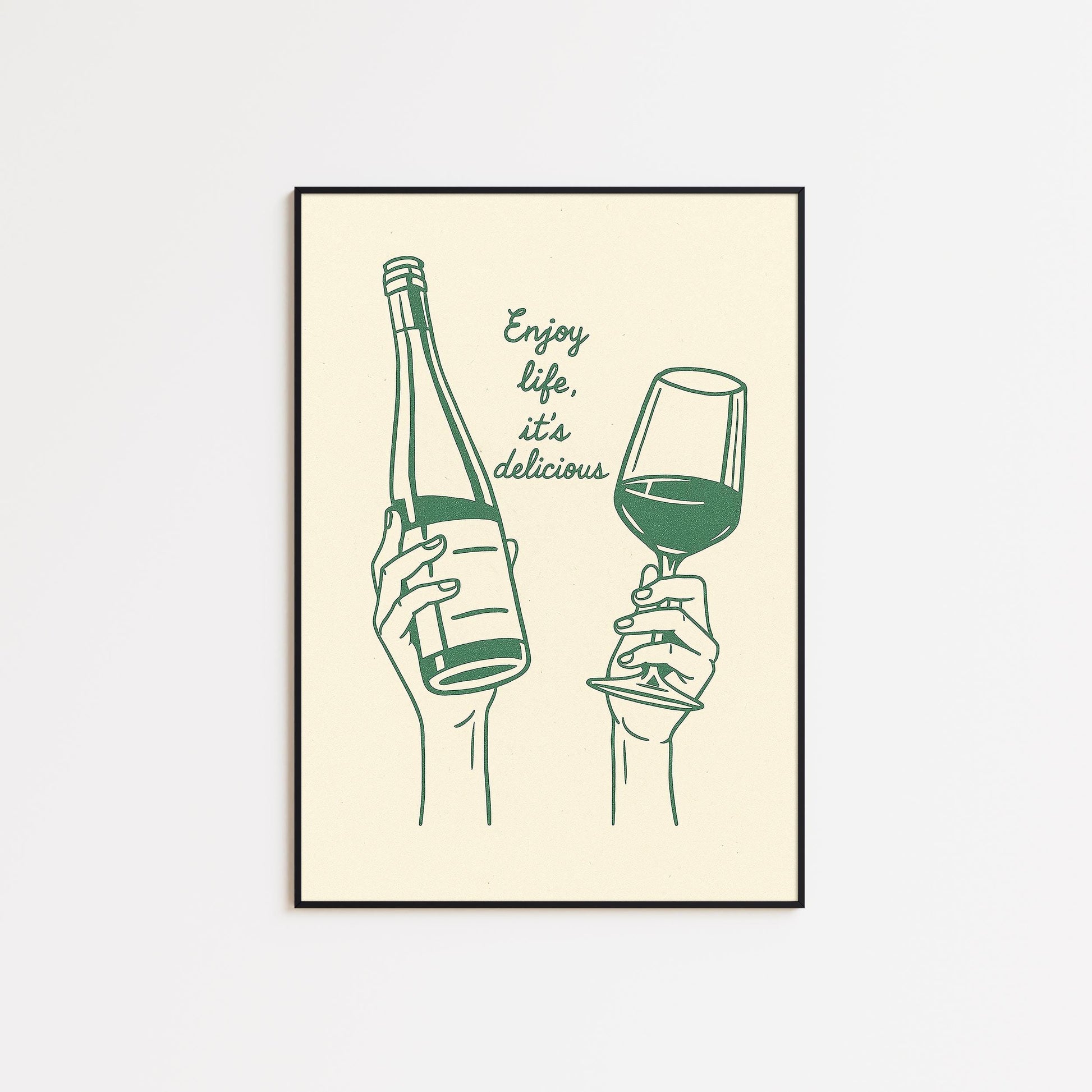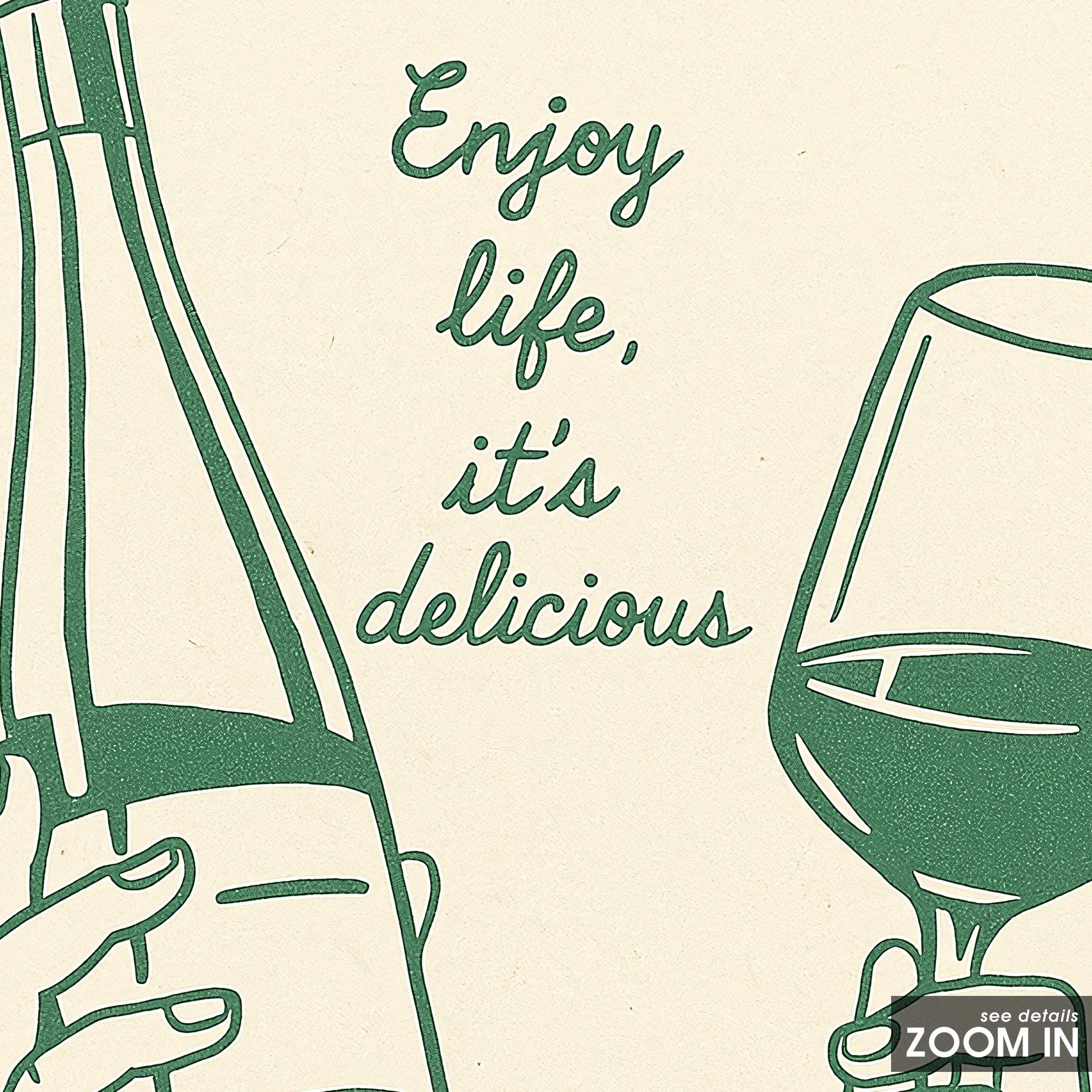 Enjoy Life It’s Delicious Poster – Minimal Wine Wall Art, Kitchen & Bar Print