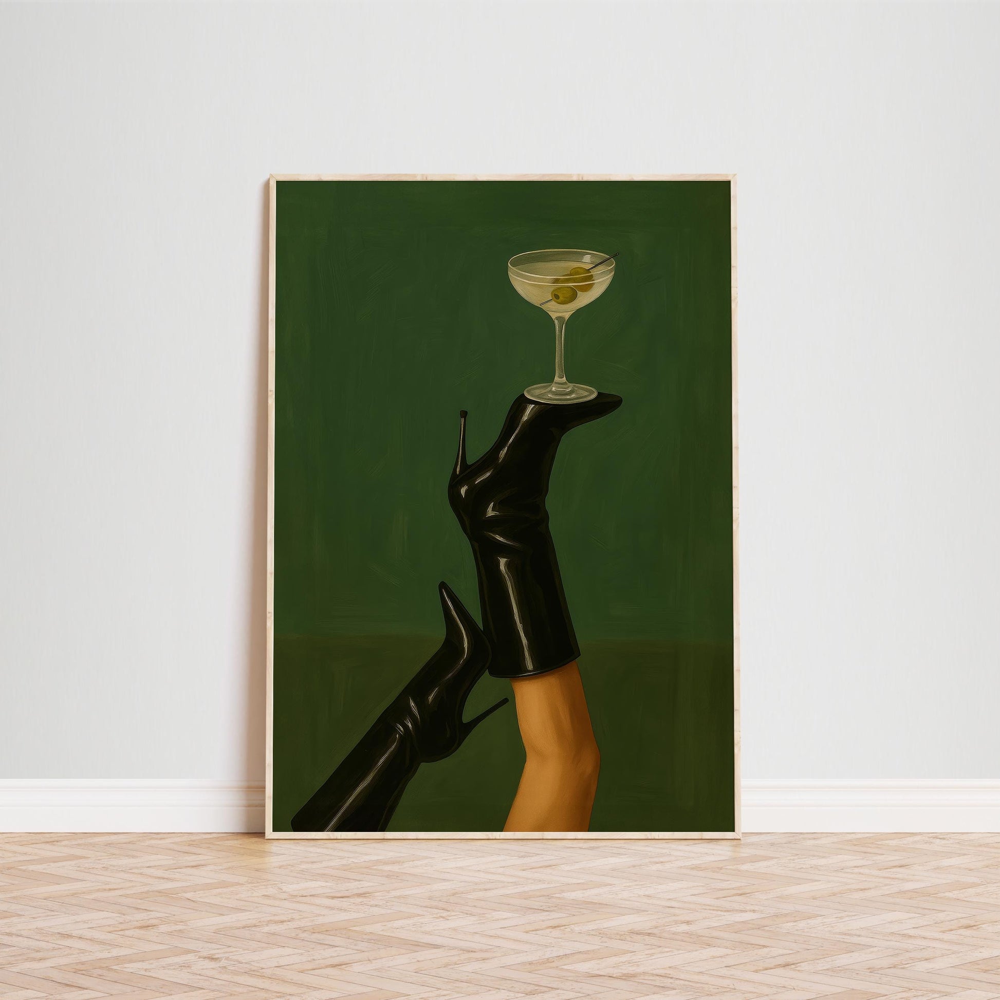 Feminine Cocktail Poster – Moody Wall Art | High Heel Print & Espresso Martini