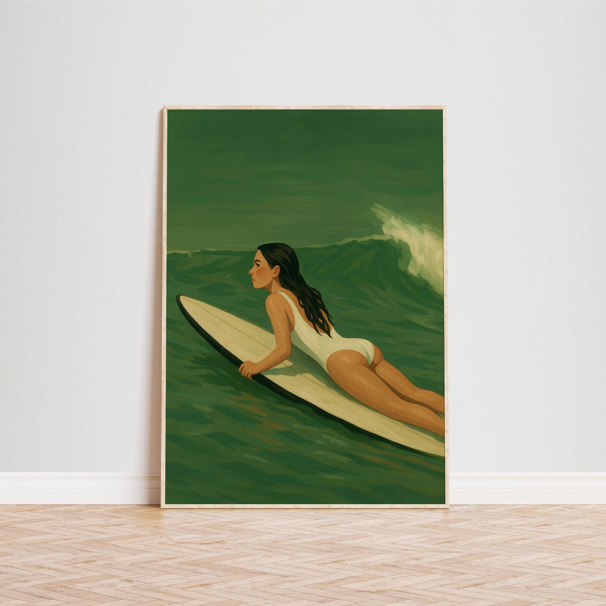Feminine Surf Art – Serene Ocean Wall Decor With Calm Wave Poster & Green Surf Waves