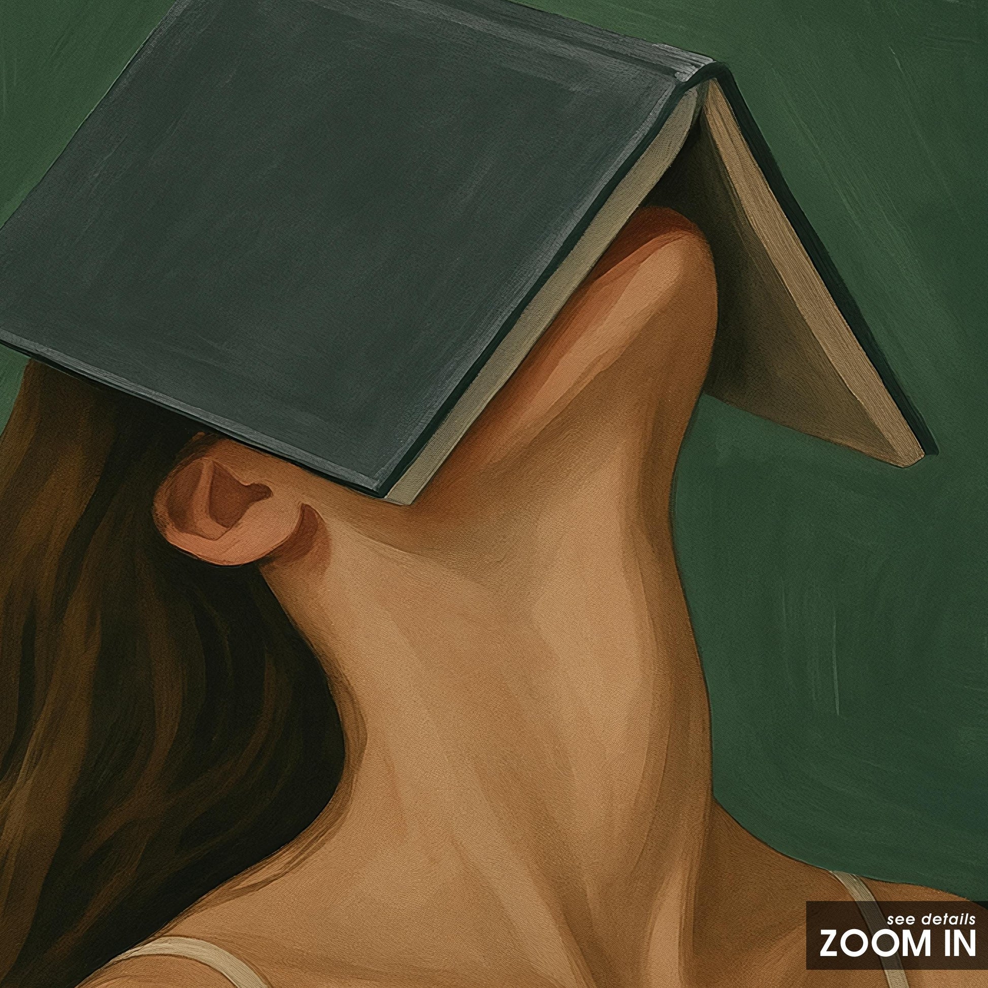 Feminine Surreal Wall Art – Dreamy Dark Green Gouache Painting Poster