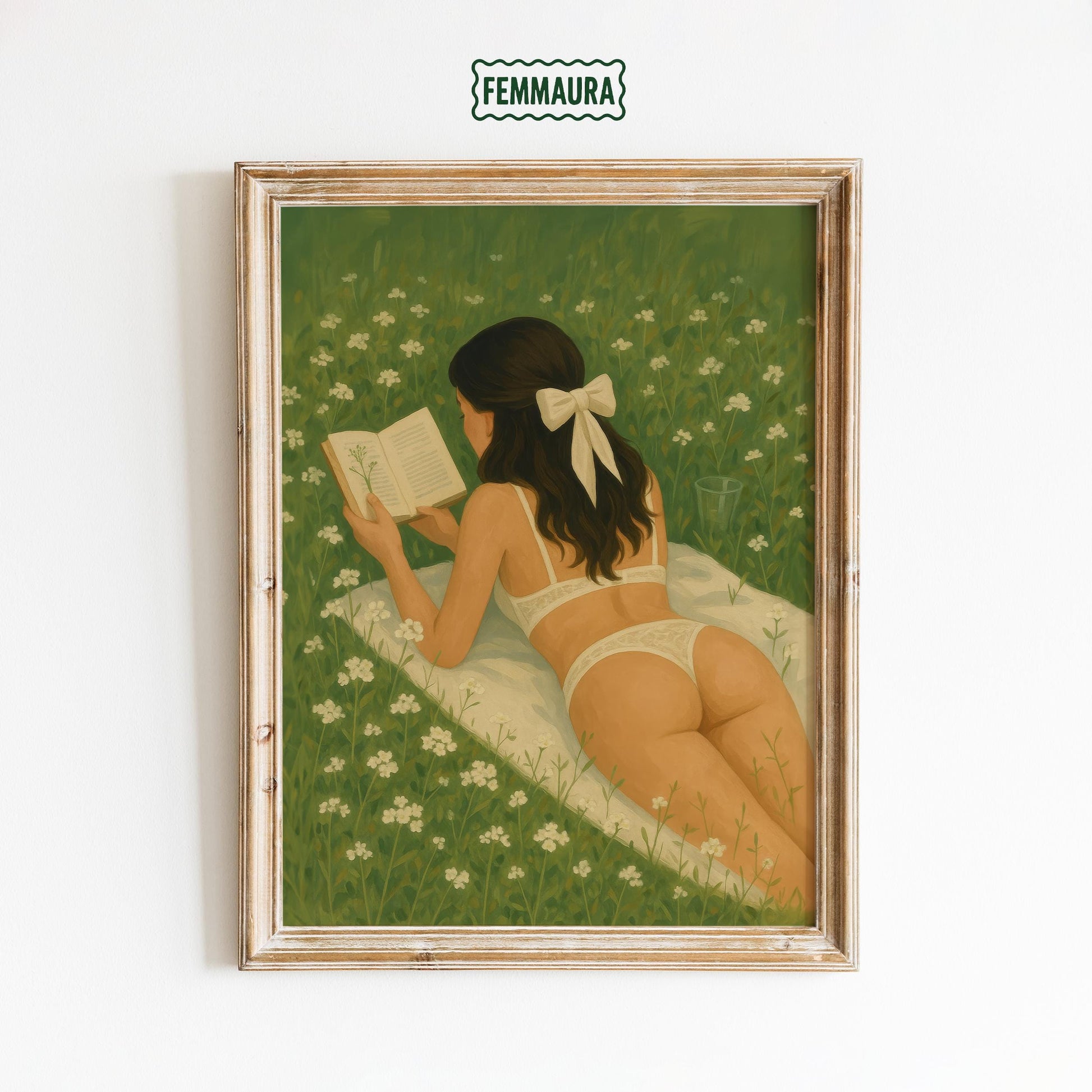 Feminine Wall Art – Reading Girl Print | Cozy Meadow & Romantic Bedroom Decor