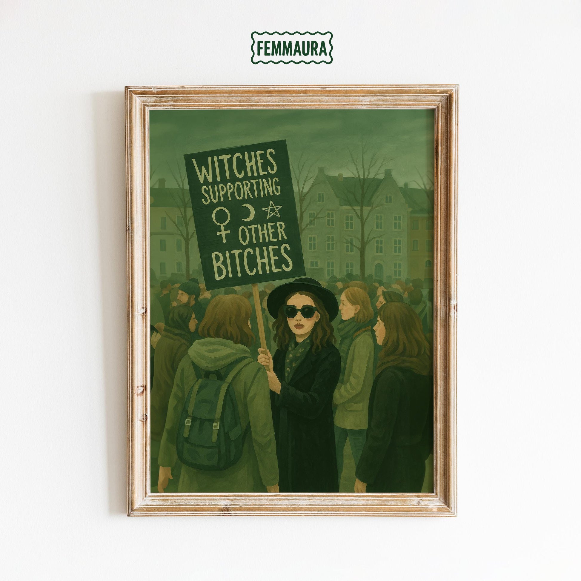 Feminist Protest Poster – Bold Witch Wall Art | Green Witchy Home Decor