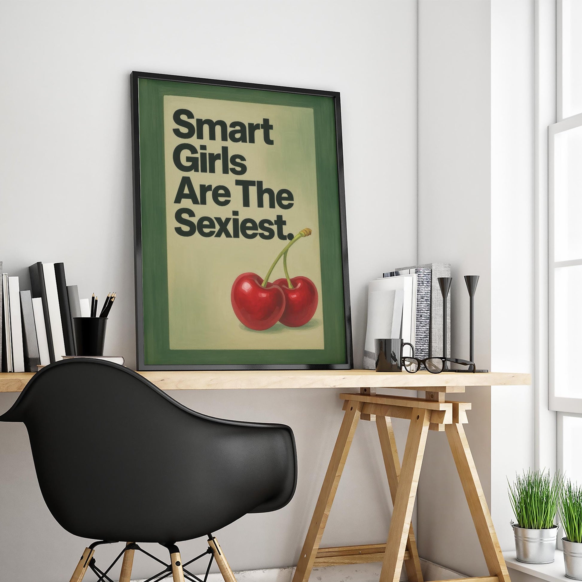 Feminist Quote Poster – Bold Cherry Print, Vintage Pin-Up Style Wall Art