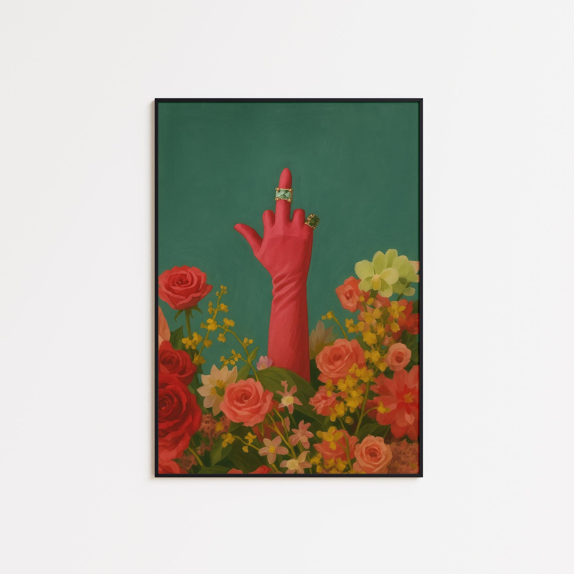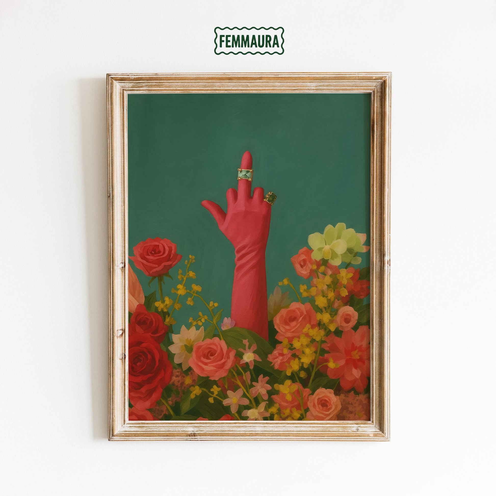 Feminist Wall Art – Bold Floral Middle Finger Poster With Vintage Feminist Print