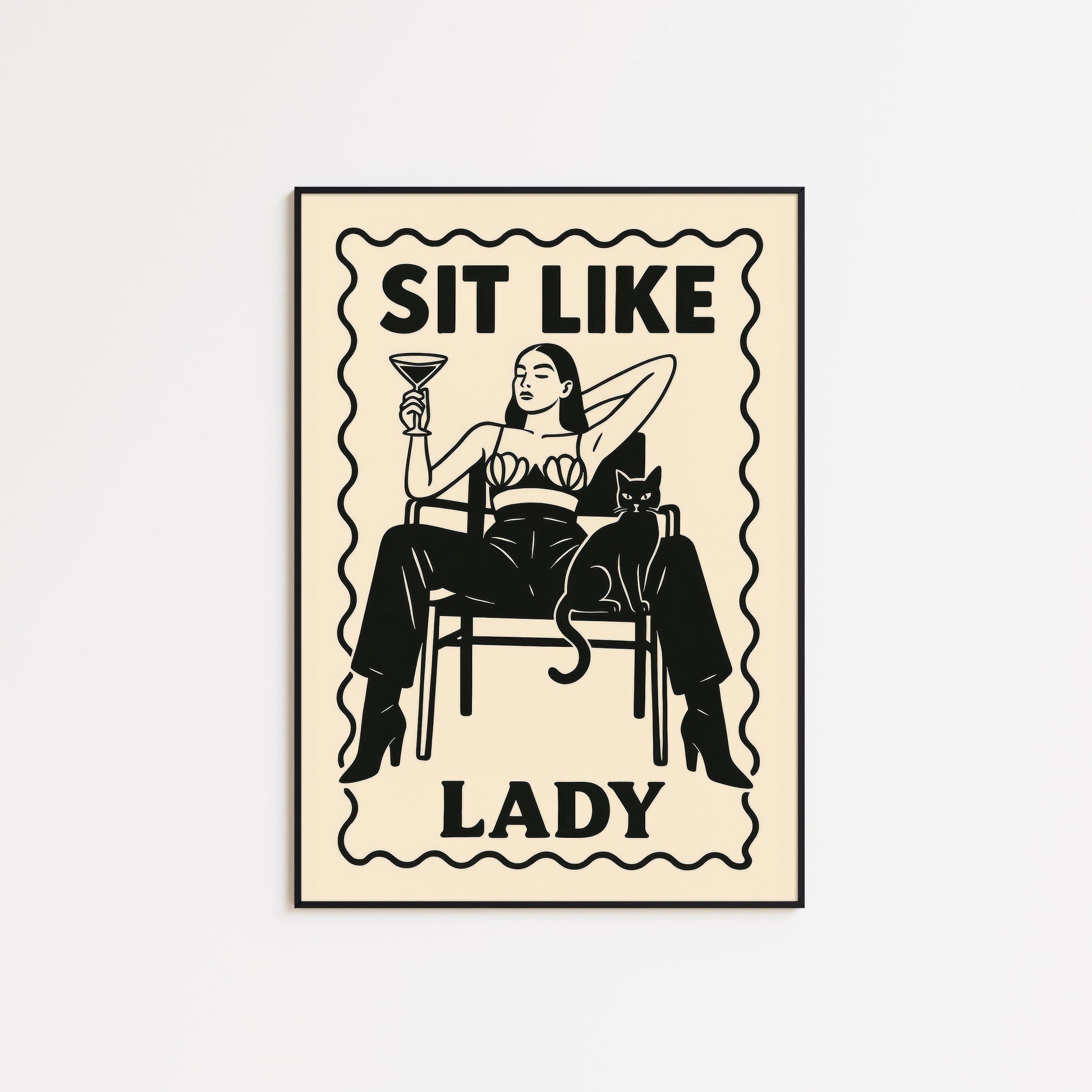 Femme Boss Wall Art – Powerful Femme Poster With Black Cat & Martini Attitude