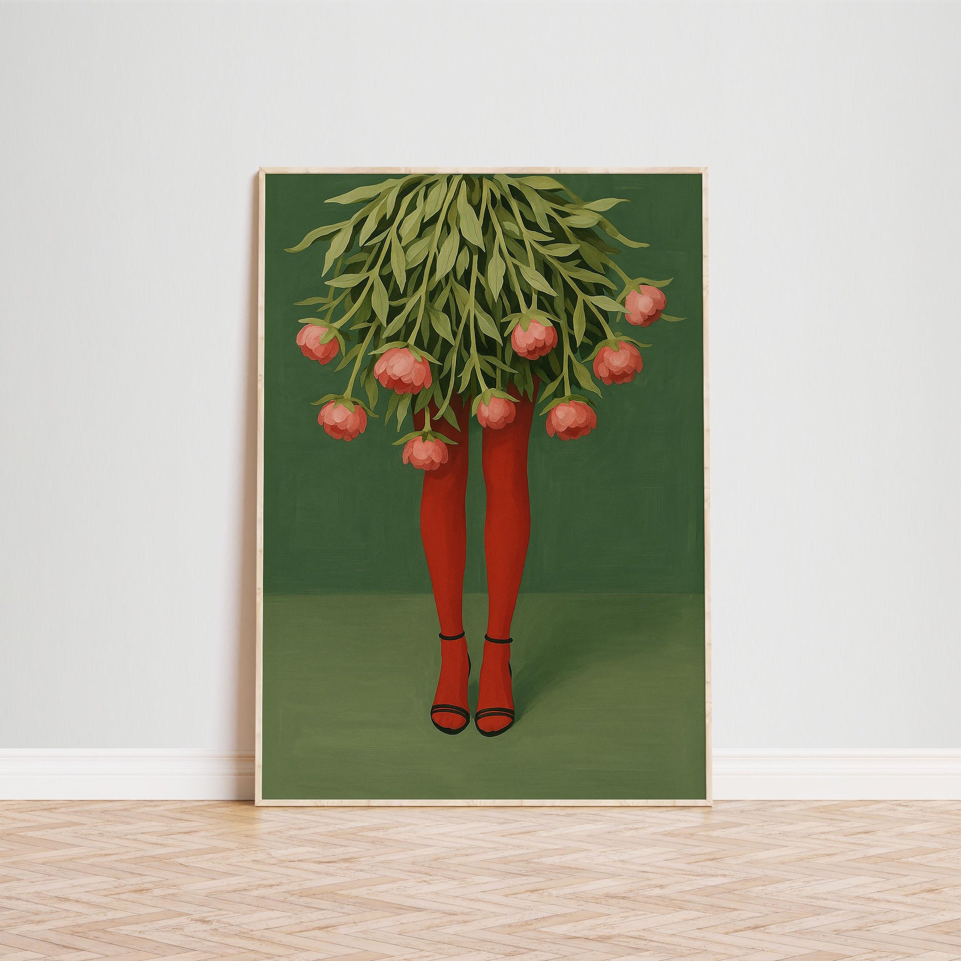Floral Legs Poster – Surreal Wall Art With Pink Flowers & Moody Botanical Decor